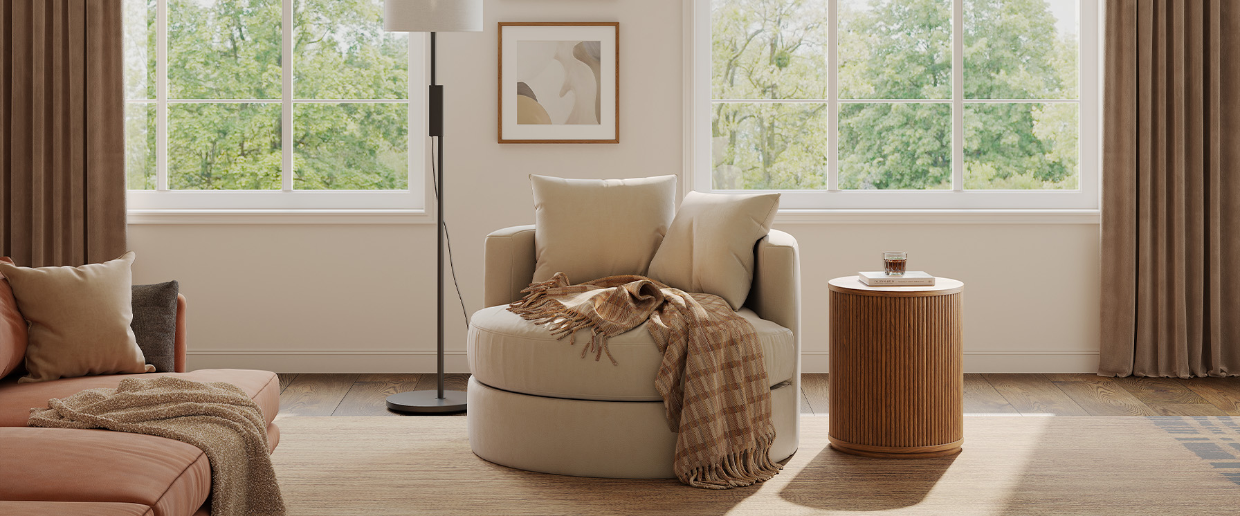 The Rolf collection was inspired by nature's quiet rhythm, blending modern simplicity with retro charm. The fluting was crafted from solid wood and highlights the wood's natural grain, creating a tactile warmth. The rounded edges and minimalist silhouette evoke a sense of vintage nostalgia, perfect for a curated living space that feels warm and cozy.