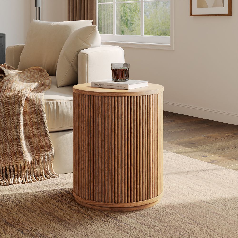 Crafted of American solid oak and engineered wood with oak veneers.All wood is kiln-dried for added durability.Solid wood fluting presents a natural texture.Blends mid-century minimalism with vertical stripe design.Color perception may vary due to wood characteristics, lighting, and devices. Wood grain variation is expected, as each is unique.