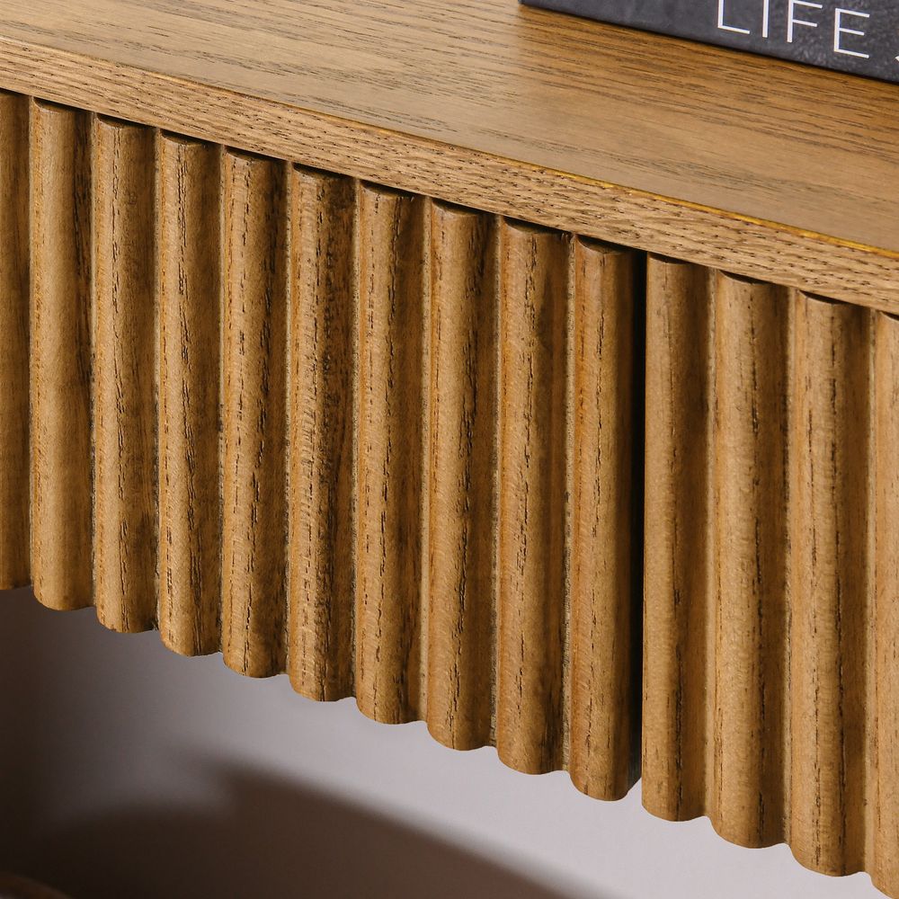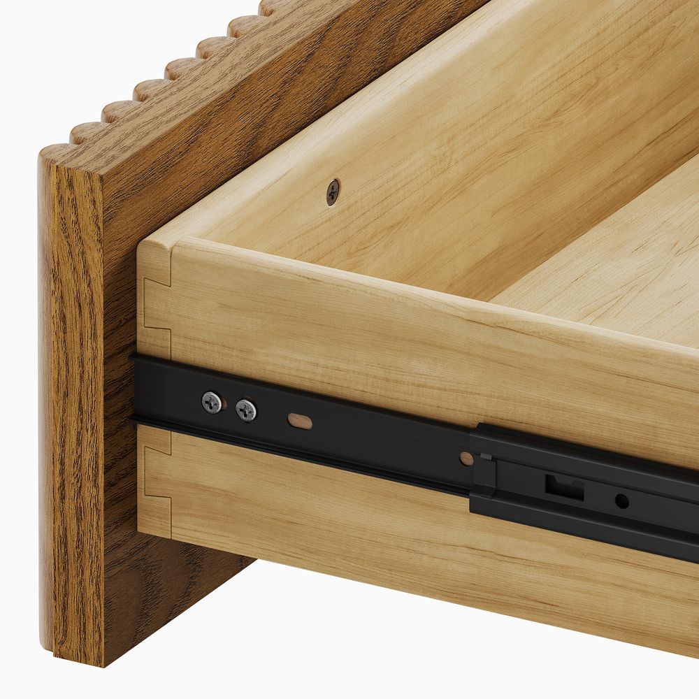 Crafted of solid wood and plywood with American oak veneers.All wood is kiln-dried for added durability.Finish is achieved through multistep process in which wood is wire brushed to highlight its rich grain.Drawers are crafted with precision dovetail joints for superior sturdiness and weight-bearing strength.Solid wood blocks are used at structural joints for reinforcement.Solid wood fluting presents natural texture.Color perception may vary due to wood characteristics, lighting, and devices. Wood grain variation is expected, as each is unique.