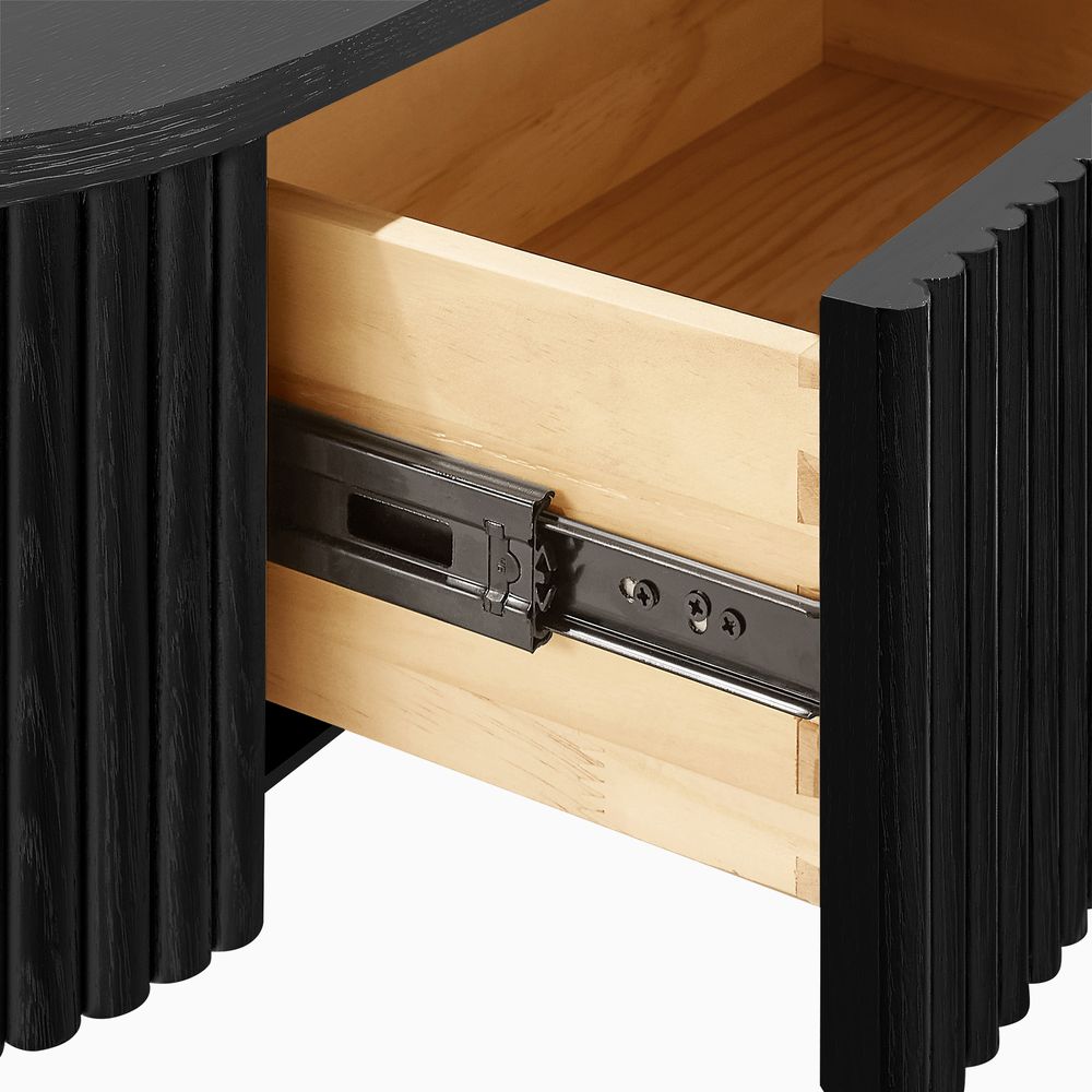Crafted of American solid oak and engineered wood with oak veneers.All wood is kiln-dried for added durability.Finish is achieved through multistep process in which wood is wire brushed to highlight its rich grain.Drawers are crafted with precision dovetail joints for superior sturdiness and weight-bearing strength.Solid wood blocks are used at structural joints for reinforcement.Solid oak fluting presents natural texture.Wall-mounted console lends an airy look to your space.Color perception may vary due to wood characteristics, lighting, and devices. Wood grain variation is expected, as each is unique.