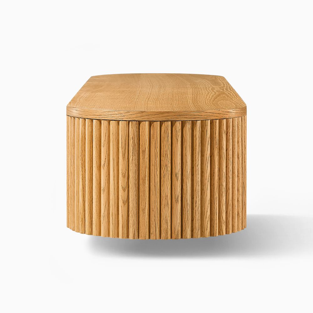 The Rolf collection was inspired by nature's quiet rhythm, blending modern simplicity with retro charm. The fluting was crafted from solid wood and highlights the wood's natural grain, creating a tactile warmth. The rounded edges and minimalist silhouette evoke a sense of vintage nostalgia, perfect for a curated living space that feels warm and cozy.