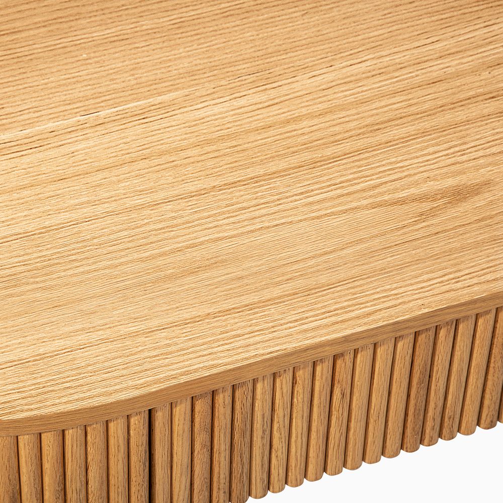 Crafted of American solid oak and engineered wood with oak veneers.All wood is kiln-dried for added durability.Drawers are crafted with precision dovetail joints for superior sturdiness and weight-bearing strength.Solid wood blocks are used at structural joints for reinforcement.Solid oak fluting presents a natural texture.Color perception may vary due to wood characteristics, lighting, and devices. Wood grain variation is expected, as each is unique.