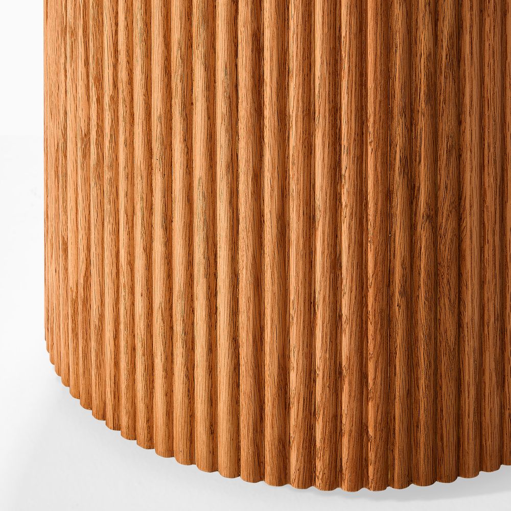 The Rolf collection was inspired by nature's quiet rhythm, blending modern simplicity with retro charm. The fluting was crafted from solid wood and highlights the wood's natural grain, creating a tactile warmth. The rounded edges and minimalist silhouette evoke a sense of vintage nostalgia, perfect for a curated living space that feels warm and cozy.