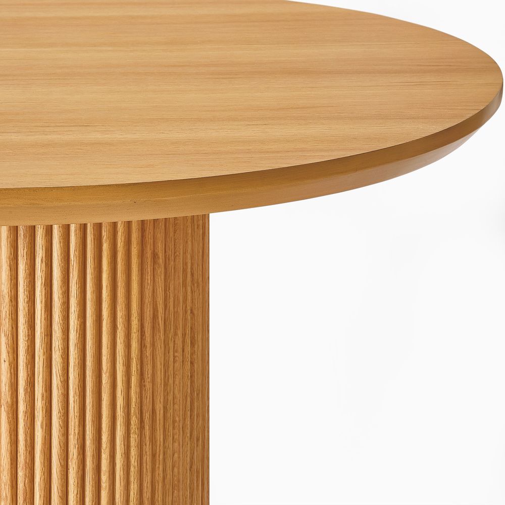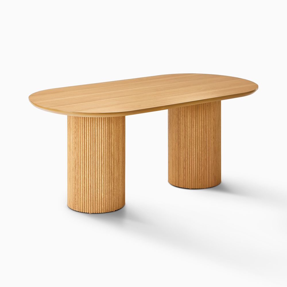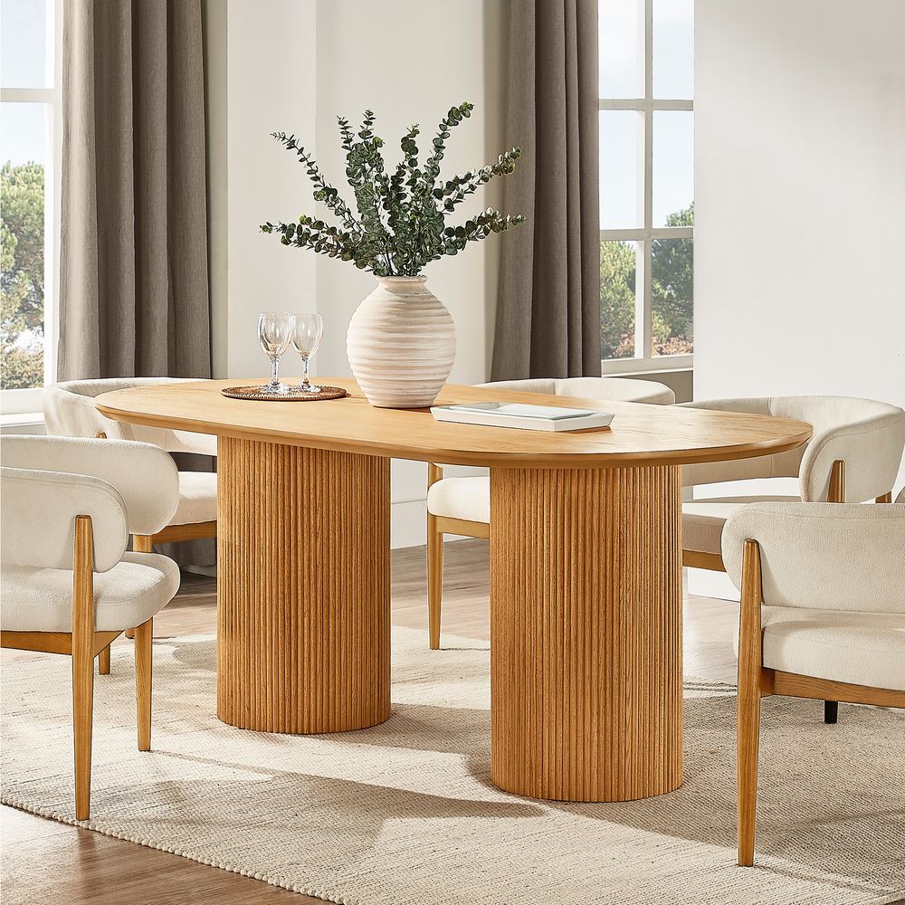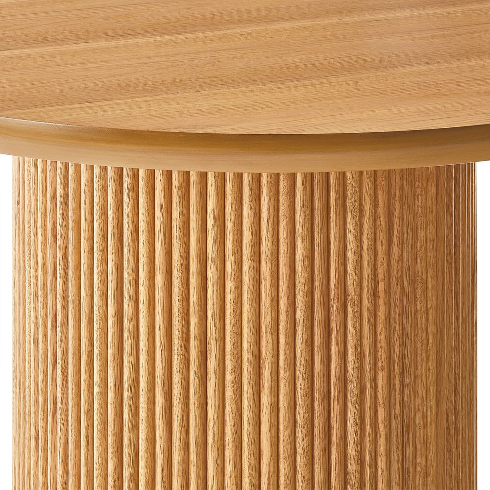 Crafted of American oak, plywood, and engineered wood.All wood is kiln-dried for added durability.Wood glazing adds visual interest with greater depth and layering and enhances coloring.Solid oak fluting presents a natural texture.72" table comfortably seats 4-6.Color perception may vary due to wood characteristics, lighting, and devices. Wood grain variation is expected, as each is unique.