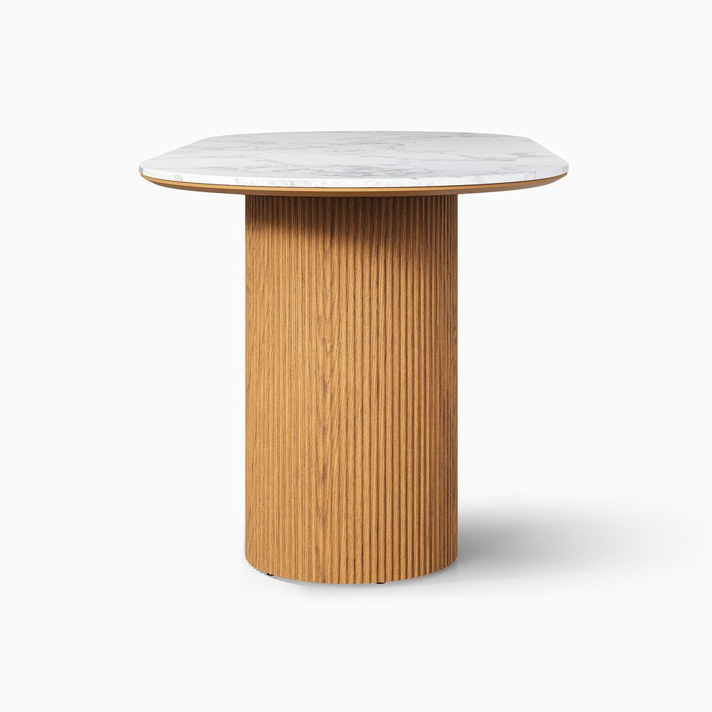 The Rolf collection was inspired by nature's quiet rhythm, blending modern simplicity with retro charm. The fluting was crafted from solid wood and highlights the wood's natural grain, creating a tactile warmth. The rounded edges and minimalist silhouette evoke a sense of vintage nostalgia, perfect for a curated living space that feels warm and cozy.