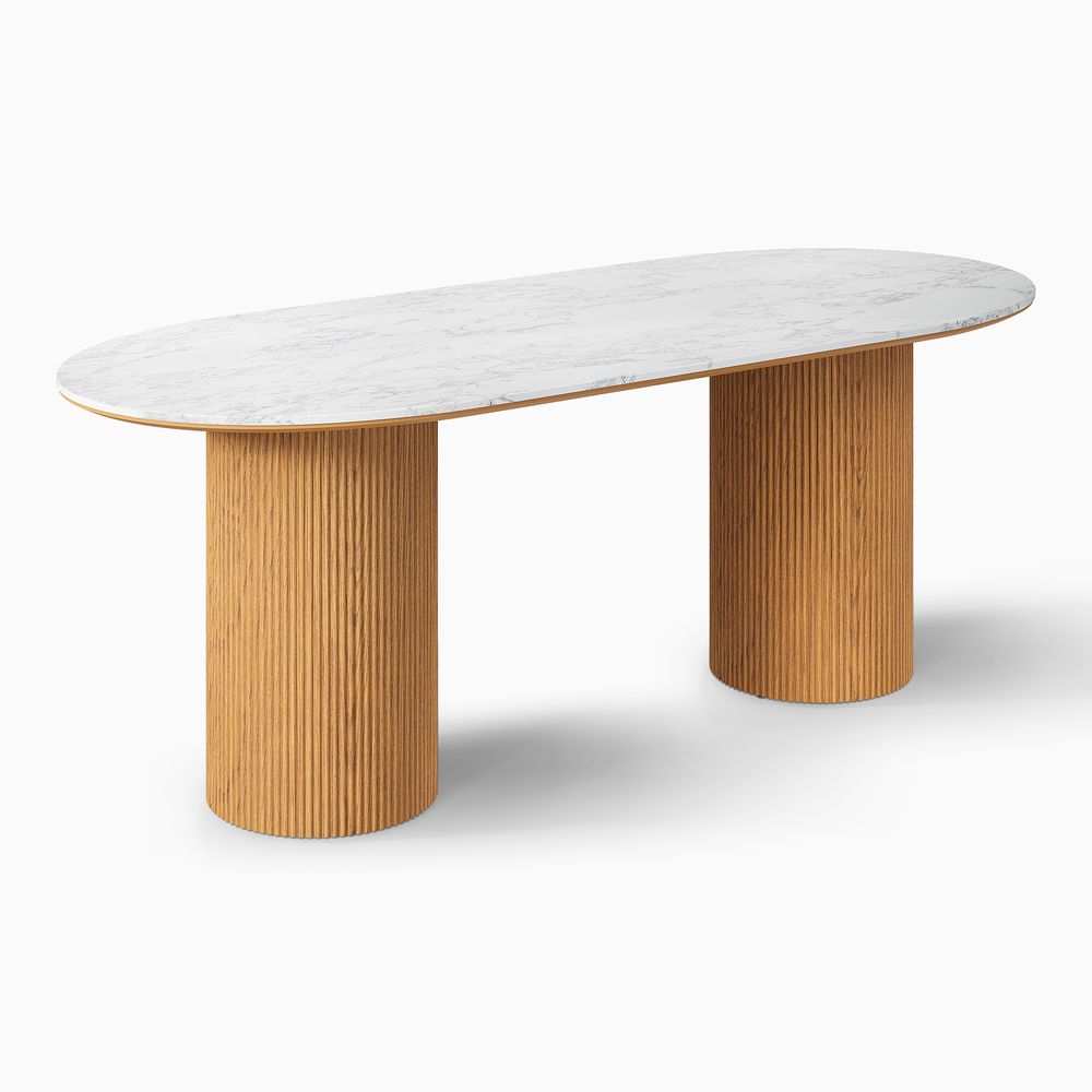 Crafted of American oak, engineered stone, plywood, and engineered wood.