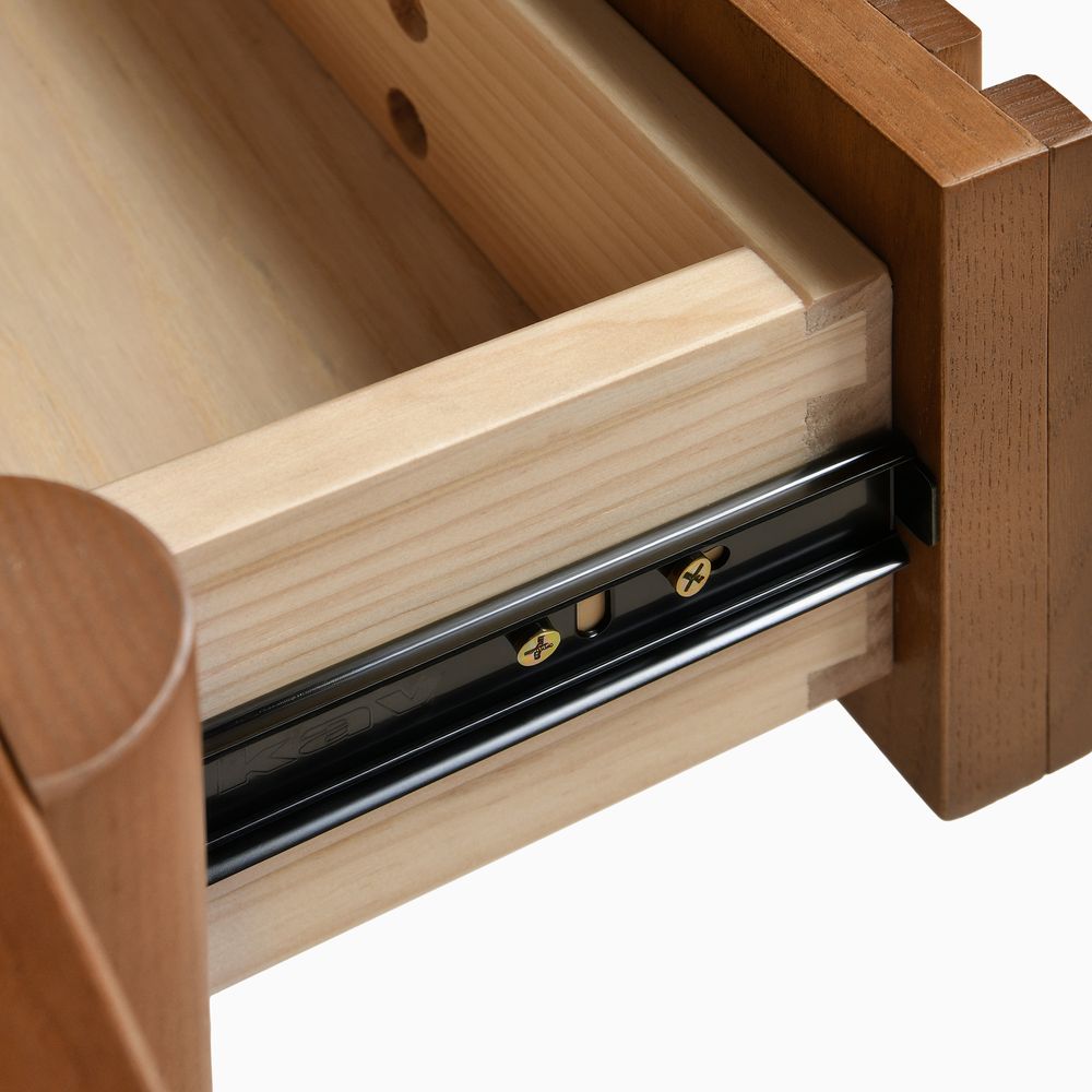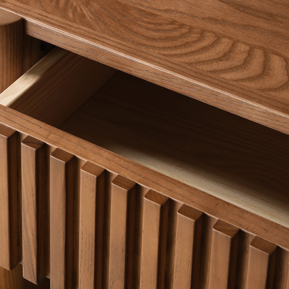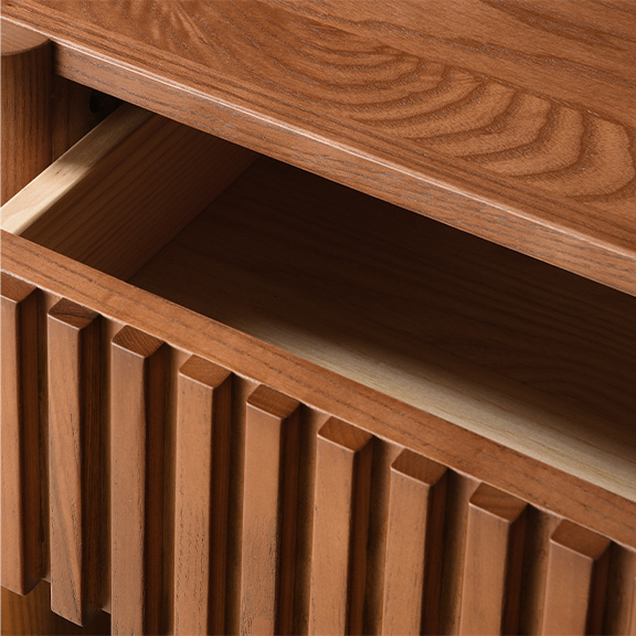 Crafted of American solid ash wood and plywood with ash wood veneers.All wood is kiln-dried for added durability.Solid wood blocks are used at structural joints for reinforcement.Solid ash wood fluting presents a natural texture.Drawers are crafted with precision dovetail joints for superior sturdiness and weight-bearing strength.The modern nostalgia silhouette evokes a vintage vibe.Color perception may vary due to wood characteristics, lighting, and devices. Wood grain variation is expected, as each is unique.