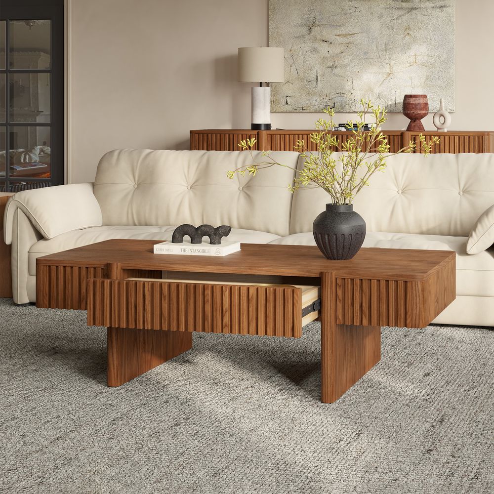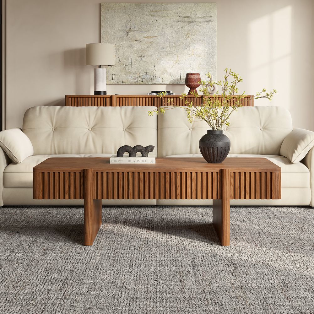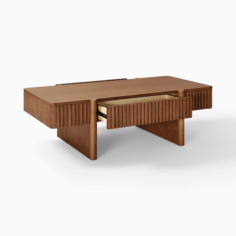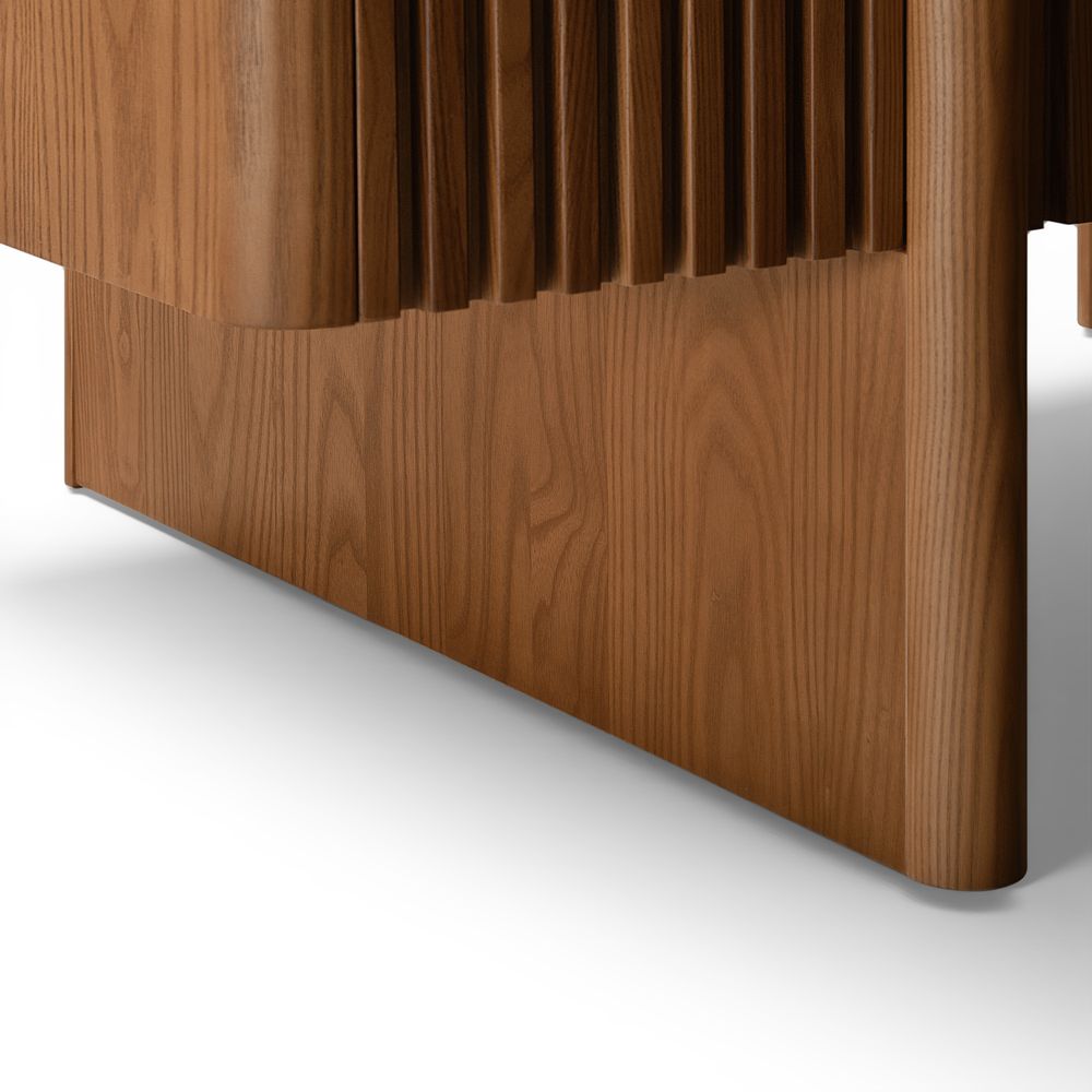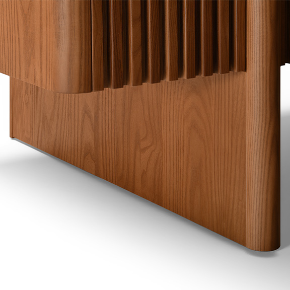 Showcasing square flutings as a fresh departure from classic round designs, this creation blends innovation with style. Its wood finish and structured detailing provide a modern aesthetic, delivering a functional piece that elevates spaces with its refined, updated look.