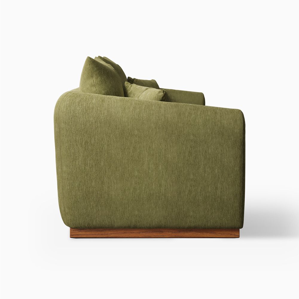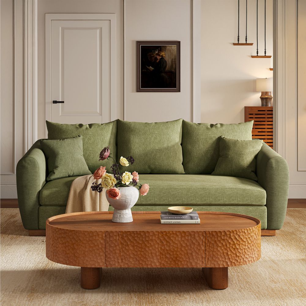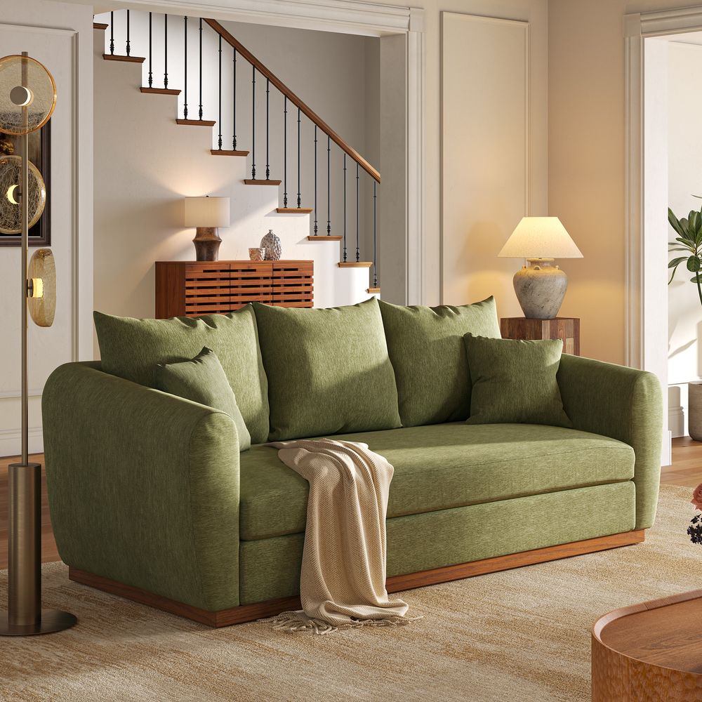 American solid ash wood and plywood frame.Chenille fabric with softness and a casual lived-in look.Seat cushions have fiber-wrapped, high-resiliency polyurethane foam cores.Sinuous spring suspension with reinforced elastic webbing.The upholstery on the sofa adds soft padding for cozy, stylish seating surfaces.Cushion covers unzip to remove.91" sofa designed for 3-4 people's gathering.3 square cushions and 3 throw pillows are included.Items purchased at different times may not match due to different dye lots, also color perception can vary by lighting and devices.