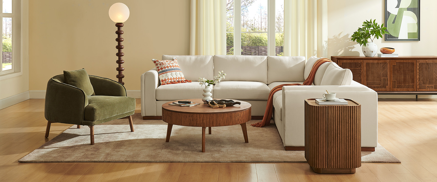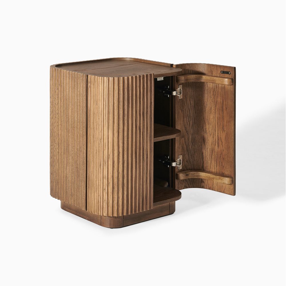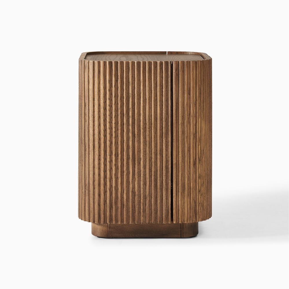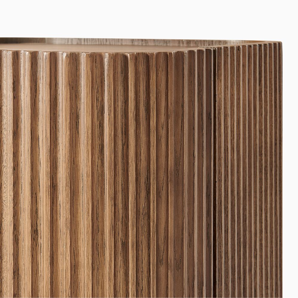 Crafted of American solid oak and engineered wood with oak veneers.All wood is kiln-dried for added durability.Finish is achieved through multistep process in which wood is wire brushed to highlight its rich grain.Solid wood fluting presents a natural texture.Solid oak wood fluting presents a natural texture.Color perception may vary due to wood characteristics, lighting, and devices. Wood grain variation is expected, as each is unique.