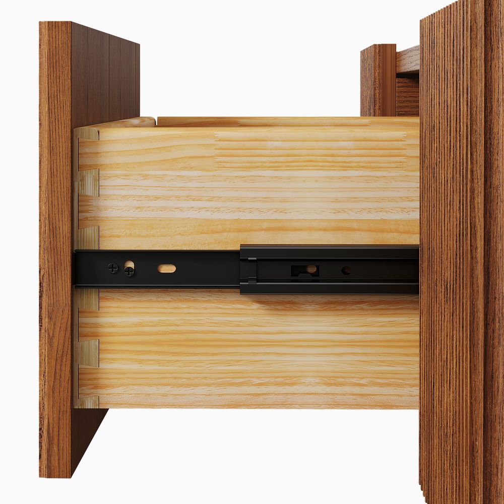 Crafted of American solid oak and plywood with oak veneers.All wood is kiln-dried for added durability.Finish is achieved through multistep process in which wood is wire brushed to highlight its rich grain.Wood glazing adds visual interest with greater depth and layering and enhances coloring.Drawers are crafted with precision dovetail joints for superior sturdiness and weight-bearing strength.Solid wood blocks are used at structural joints for reinforcement.Solid oak wood fluting presents a natural texture.Color perception may vary due to wood characteristics, lighting, and devices. Wood grain variation is expected, as each is unique.