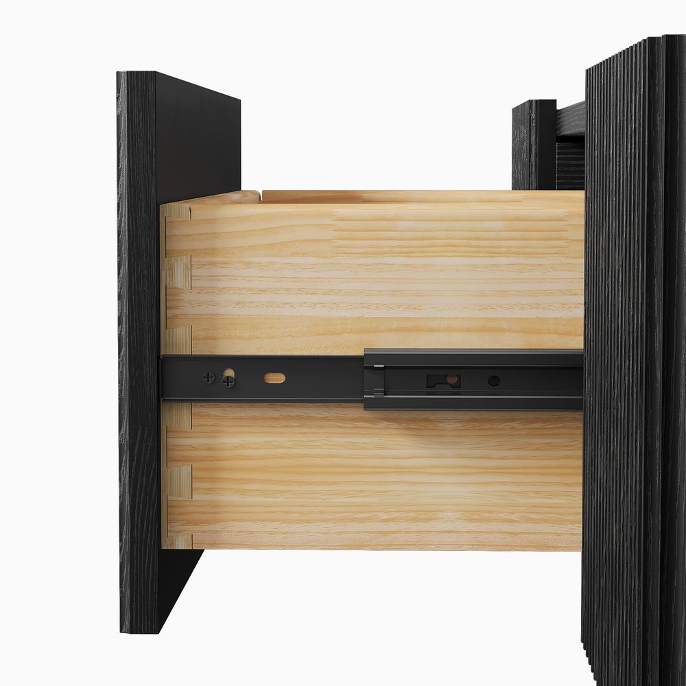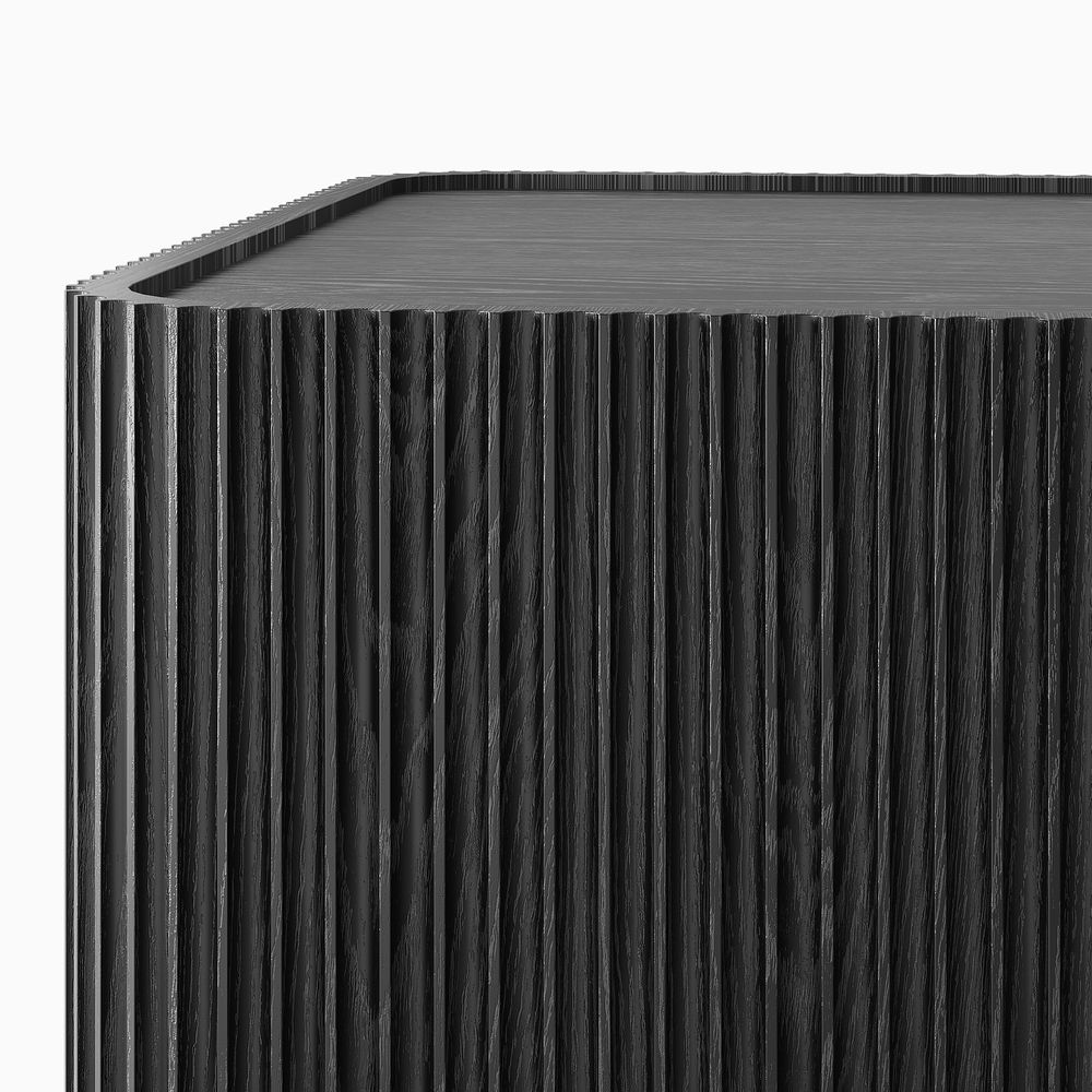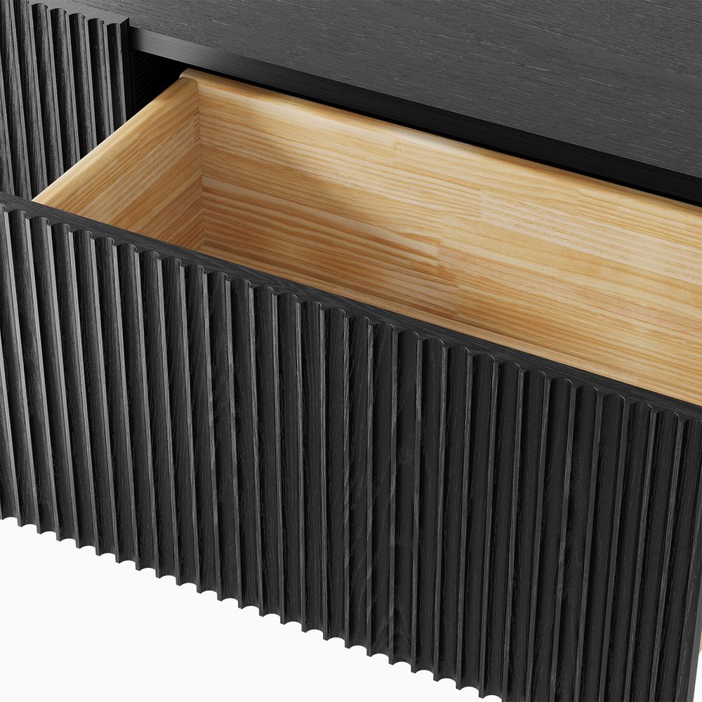 Featuring the flutings crafted into a wave-inspired design, this creation of the Skimra collection merges form with function. The warm wood finish and rhythmic detailing evoke a sense of movement, providing a unique storage option that adds a touch of artistry to any space.