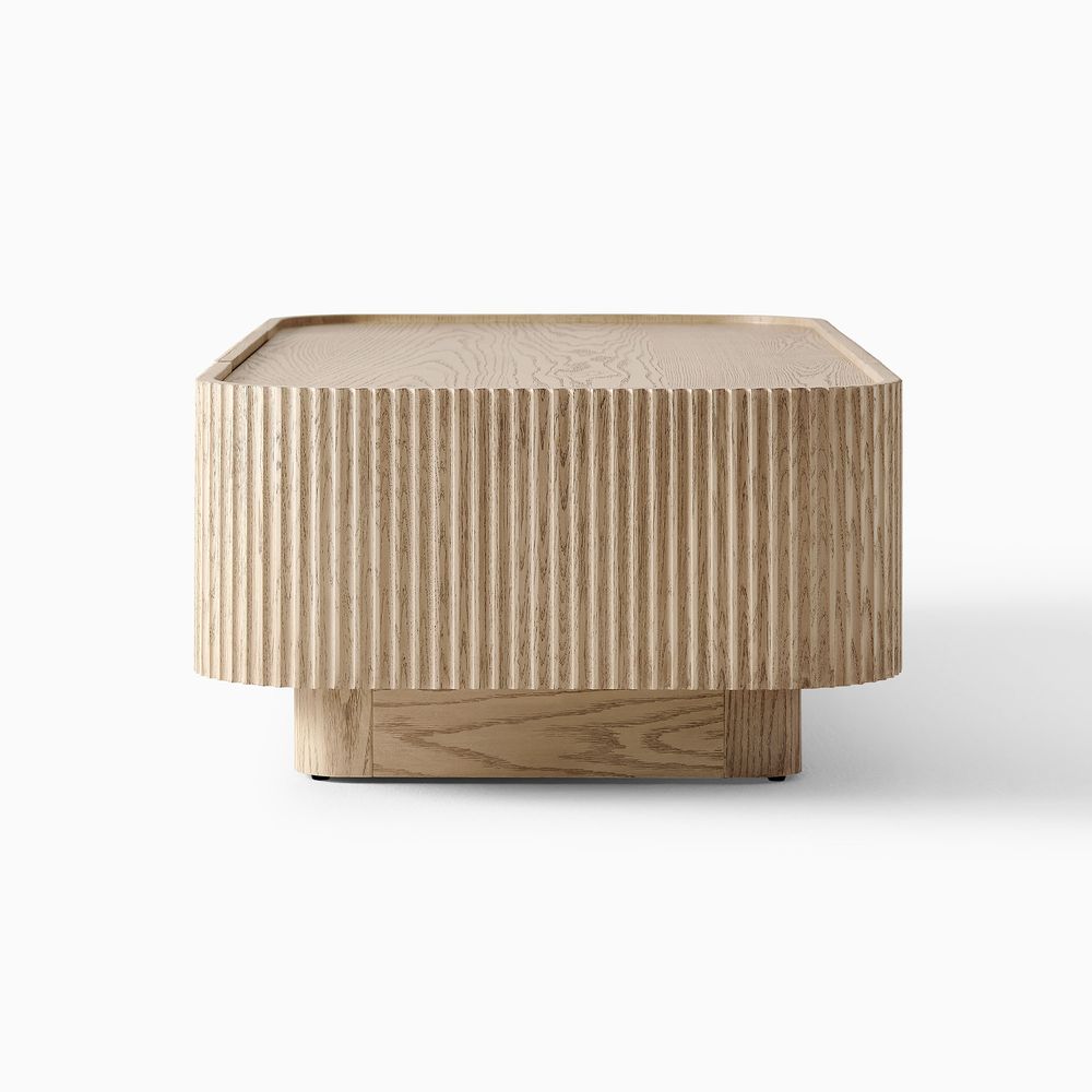 Solid oak fluting underscores the texture and depth.