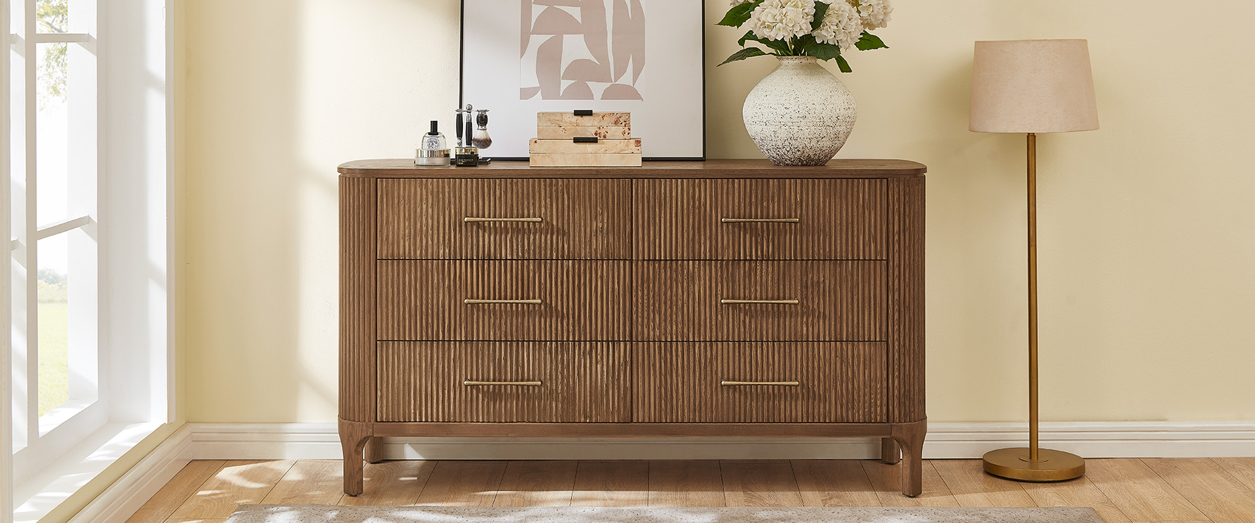Rounded corners accentuate the fluted front.
