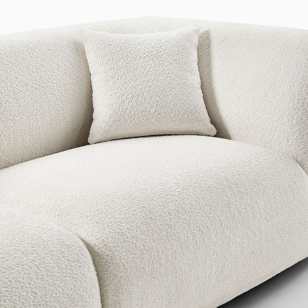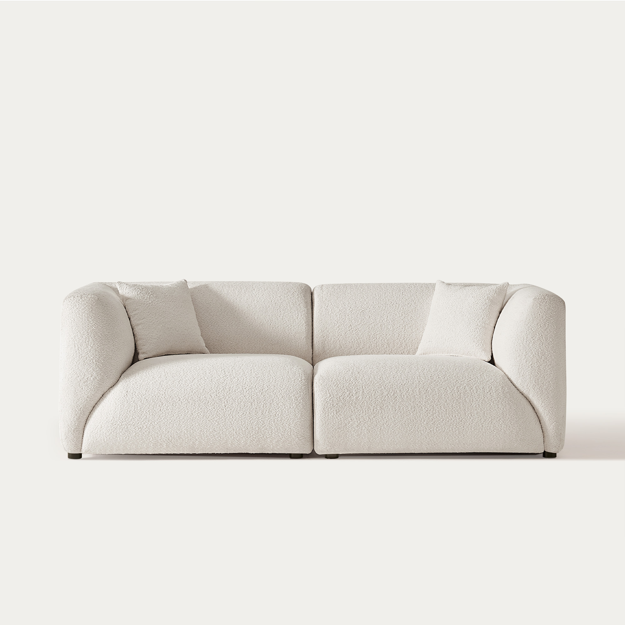 Solid wood and plywood frame.Bouclé fabric with spill-resistant and gives it a super soft handfeel.Seat cushions have fiber-wrapped, high-resiliency polyurethane foam cores.Sinuous spring suspension with reinforced elastic webbing.The upholstery on the sofa adds soft padding for cozy, stylish seating surfaces.88" sofa designed for 3-4 people's gathering, 2 throw pillows are included.Items purchased at different times may not match due to different dye lots, also color perception can vary by lighting and devices.