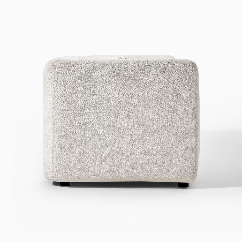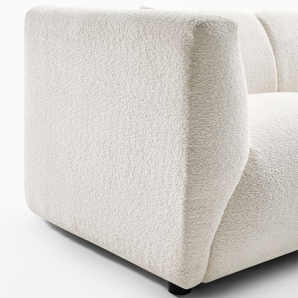 Solace sofa features plush, curved silhouettes that embrace comfort. The textured fabric and soft cushions add a cozy yet chic vibe, drawing from contemporary art and architectural fluidity to be a standout in any modern living space.