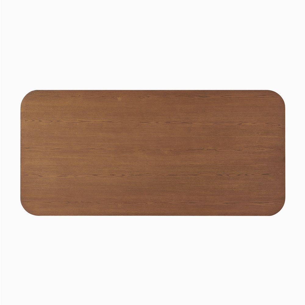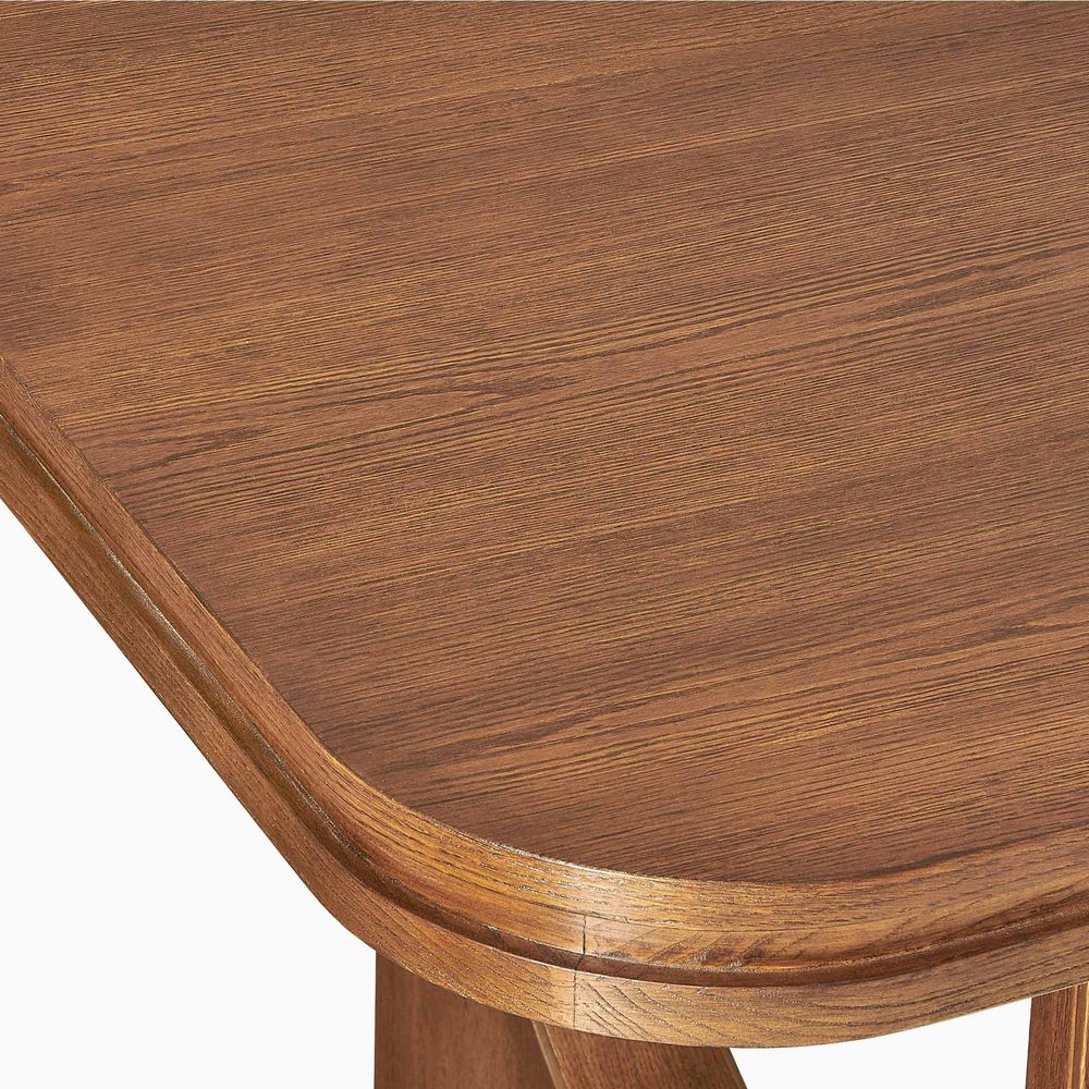 Crafted of American solid oak and engineered wood with oak veneers.All wood is kiln-dried for added durability.Finish is achieved through multistep process in which wood is wire brushed to highlight its rich grain.Wood glazing adds visual interest with greater depth and layering and enhances coloring.Solid wood blocks are used at structural joints for reinforcement.84" table comfortably seats 6-8.Color perception may vary due to wood characteristics, lighting, and devices. Wood grain variation is expected, as each is unique.