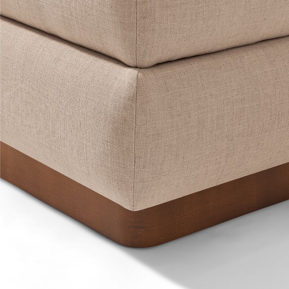 The Svalbard ottoman seamlessly extends the sofa collection, inheriting its modernist ethos and bespoke refinement. Its plush, voluminous fabric and layered contours echo the sofa's fusion of architectural precision and comfort. This footstool also offers a luxurious and secure resting space with built-in storage, effortlessly embodying the collection's signature balanced aesthetics while delivering everyday practicality.