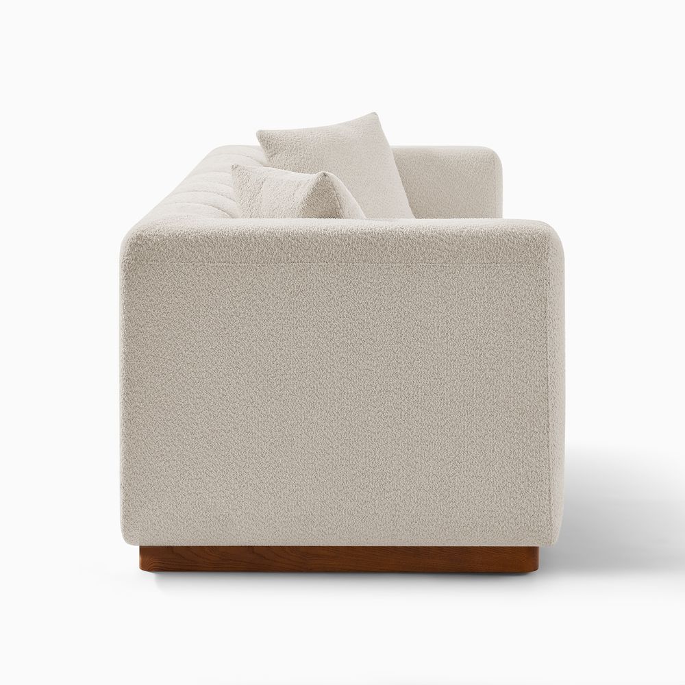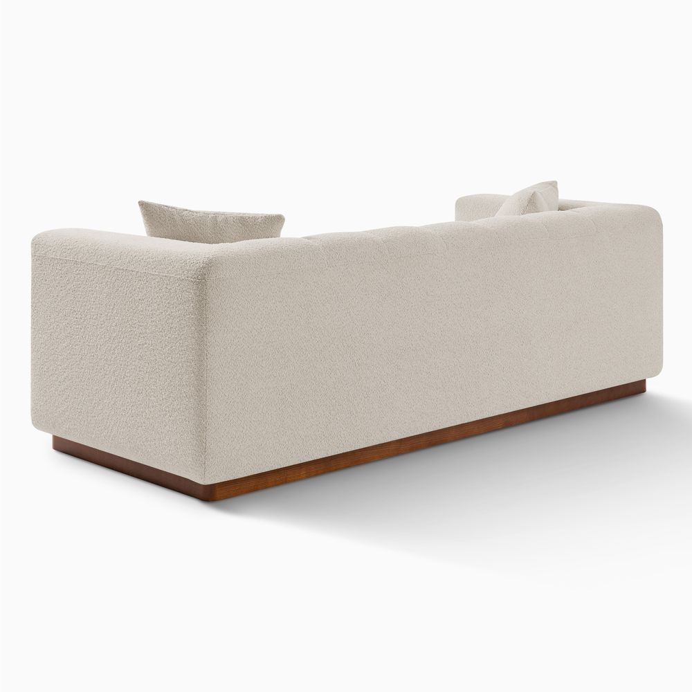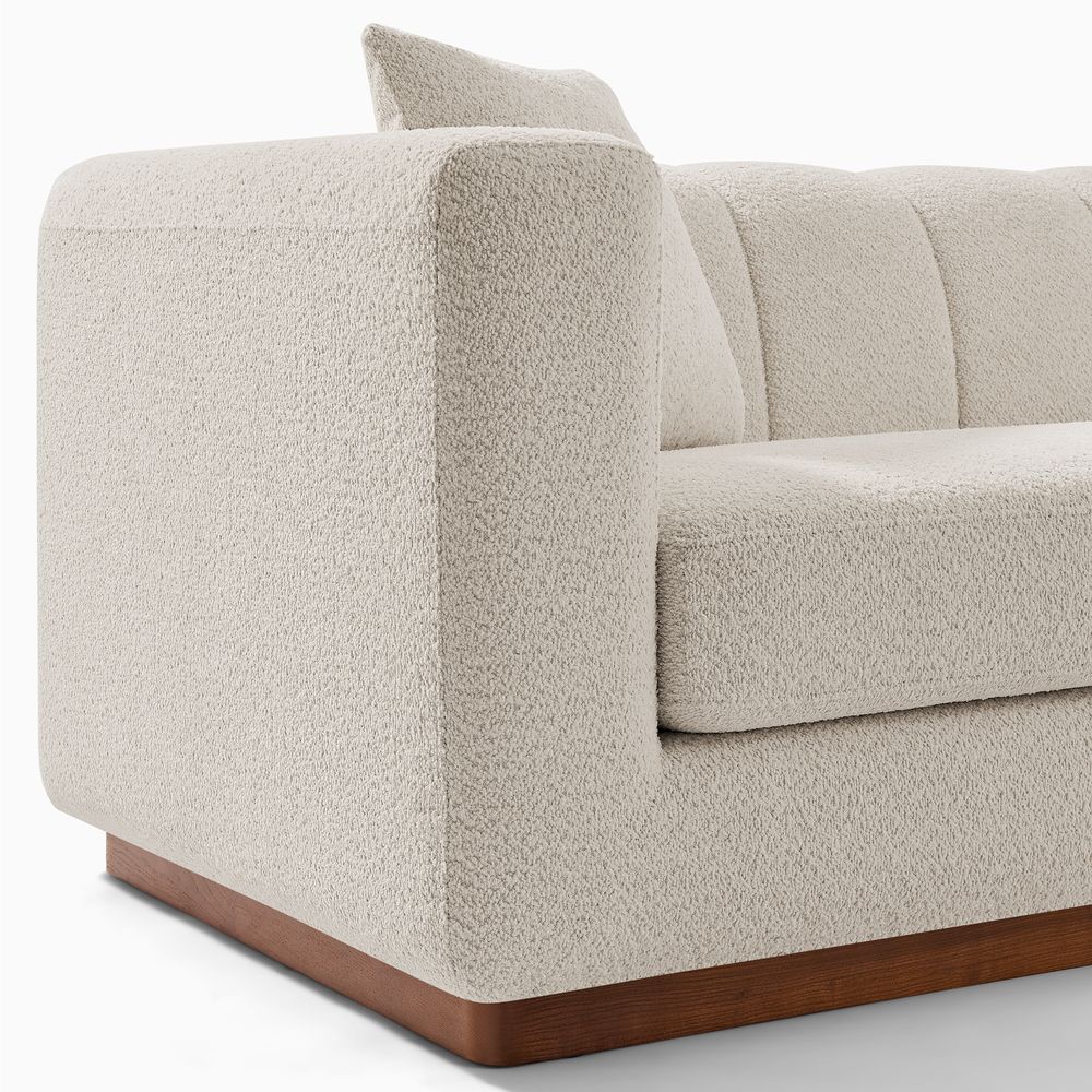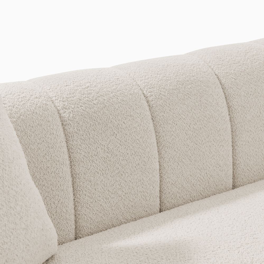 Solid wood and plywood frame.Bouclé fabric with spill-resistant and give it a super soft handfeel.Seat cushions have fiber-wrapped, high-resiliency polyurethane foam cores.Sinuous spring suspension with reinforced elastic webbing.The upholstery on the sofa adds soft padding for cozy, stylish seating surfaces.Cushion covers unzip to remove((only loveseat).90" sofa designed for 3-4 people's gathering, 2 throw pillows are included.Ottoman with interior storage easily stows books, throws or pillows.Items purchased at different times may not match due to different dye lots, also color perception can vary by lighting and devices.
