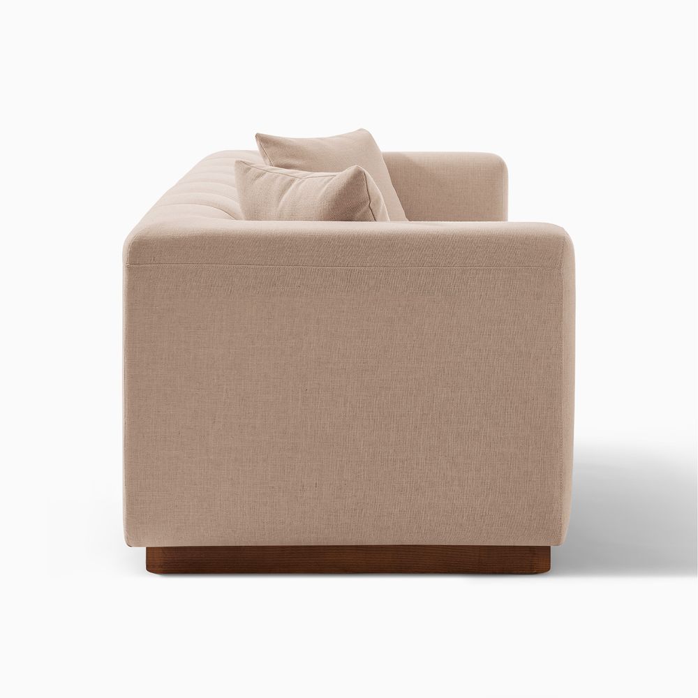 The Svalbard Sofa draws from modernist design and a craving for tailored sophistication. Its backrest features crisp vertical panelling, lending a structured, gallery-worthy look, while the substantial yet softly angled armrests mix sturdy support with refined charm. Matched with the sleek, integrated base, this design effortlessly marries architectural precision and inviting comfort.