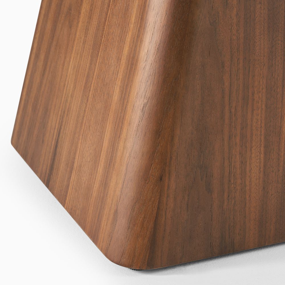 Crafted of engineered stone and plywood with American oak veneer.Tabletop is honed and sealed for a satin finish with deep veining and natural color contrasts.Wood glazing adds visual interest with greater depth and layering and enhances coloring.Striking trapezoidal base offers foundational support.72" table comfortably seats 4-6.Color perception may vary due to wood characteristics, lighting, and devices. Wood grain variation is expected, as each is unique.Variation in the veining of stone is to be expected, as each piece will be unique.