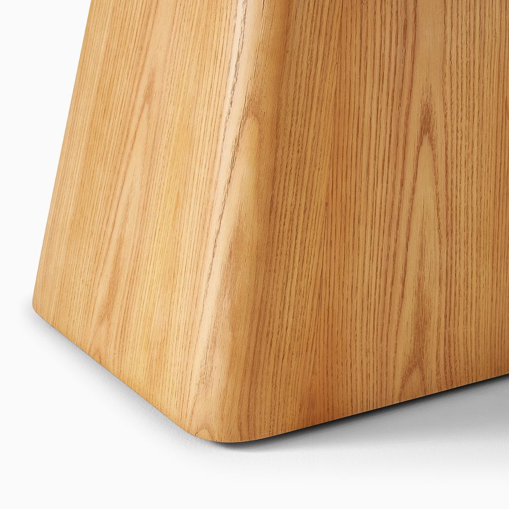 Crafted of plywood with American oak veneer.Wood glazing adds visual interest with greater depth and layering and enhances coloring.Striking trapezoidal base offers foundational support.72" table comfortably seats 4-6.Color perception may vary due to wood characteristics, lighting, and devices. Wood grain variation is expected, as each is unique.Variation in the veining of stone is to be expected, as each piece will be unique.