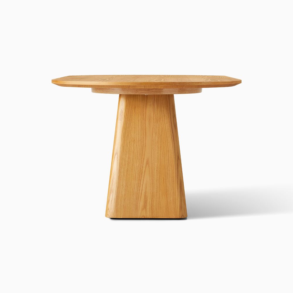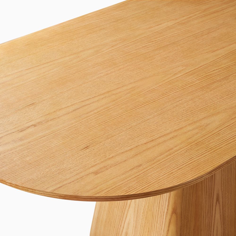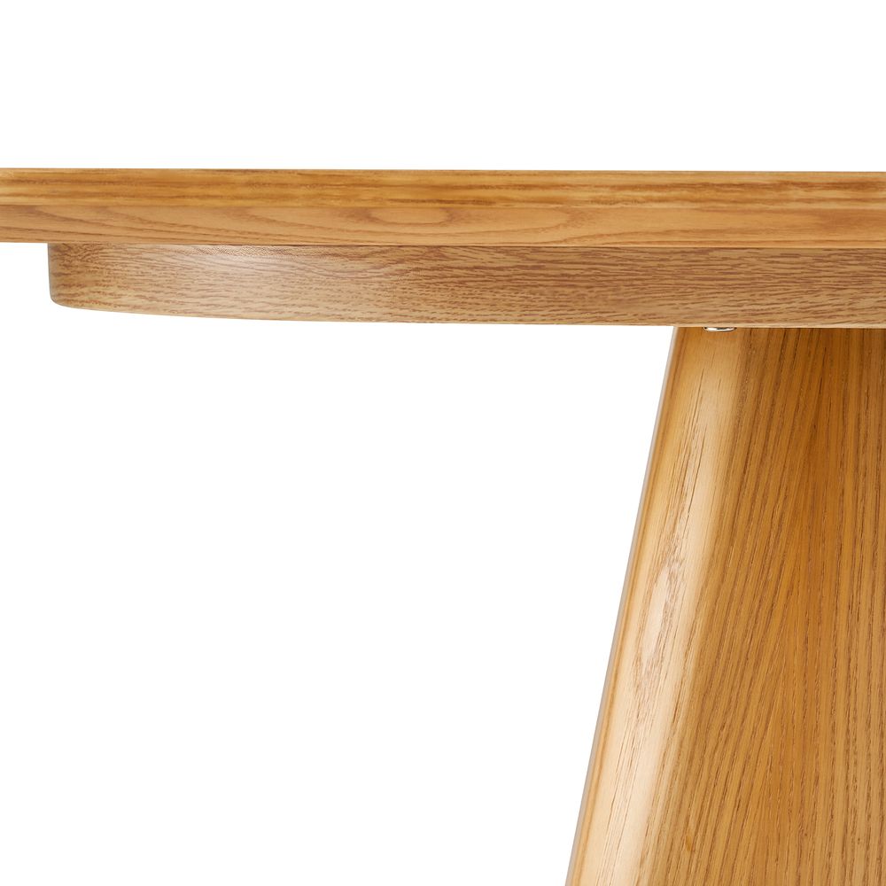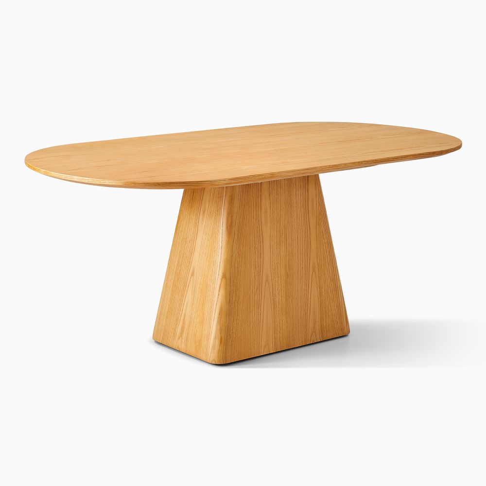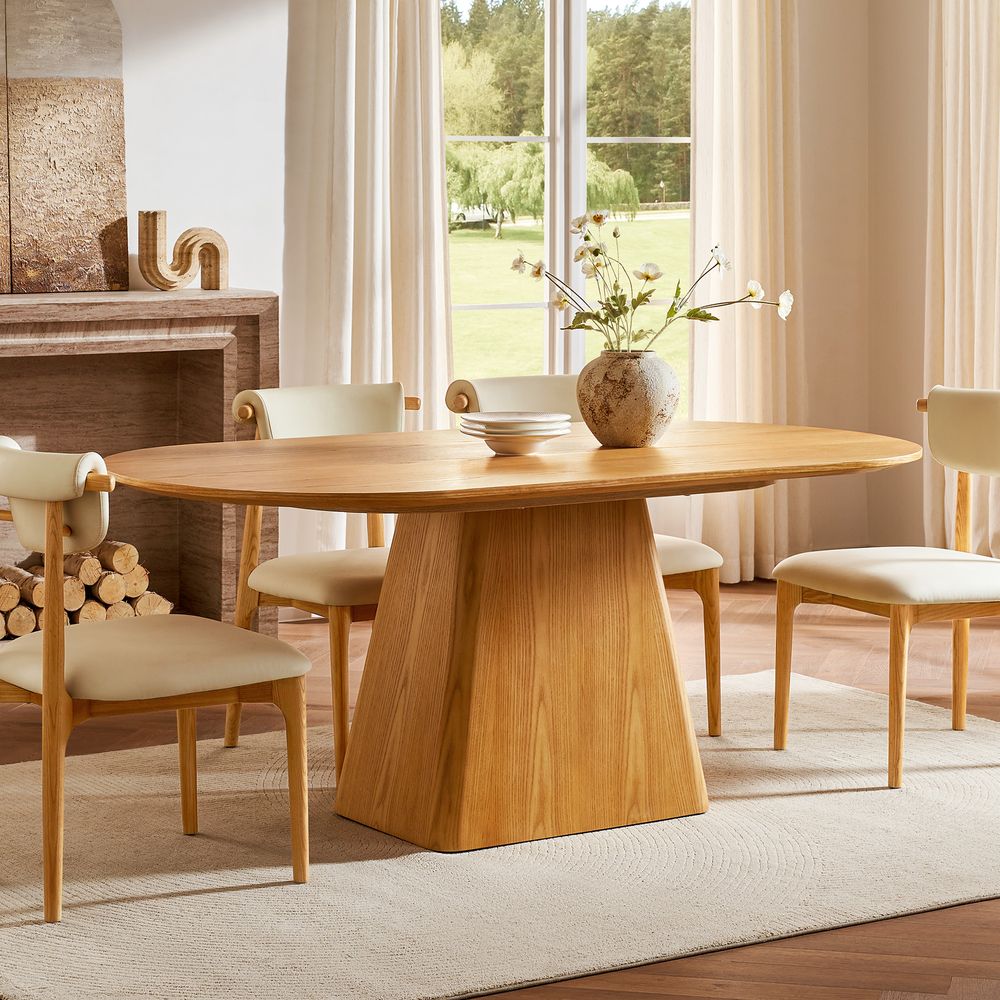 Meet the Thorsten Dining Table: where a modern silhouette wraps around timeless natural warmth, bringing tactile charm to every meal. Tabletop features rounded edges, keeping the look sleek and approachable. Complementing this refined surface is a uniquely wooden base crafted from rich finishes: a warm, organic touch that adds unshakable stability, forging a harmonious blend of contemporary sleekness and natural, inviting charm.