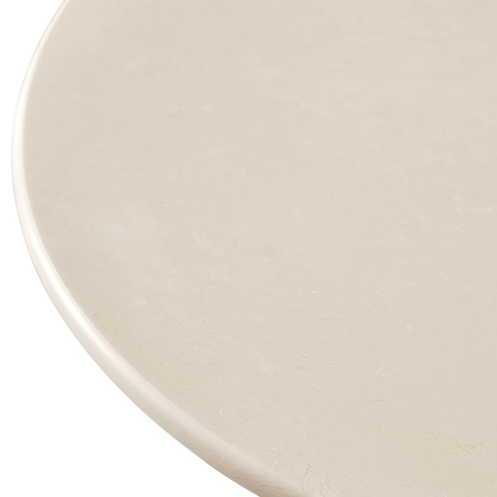 Its smooth, engineered stone tabletop elevates your space with a luxurious feel. Complementing this refined surface is a uniquely wooden base crafted from rich finishes: a warm, organic touch that adds unshakable stability, forging a harmonious blend of contemporary sleekness and natural, inviting charm.