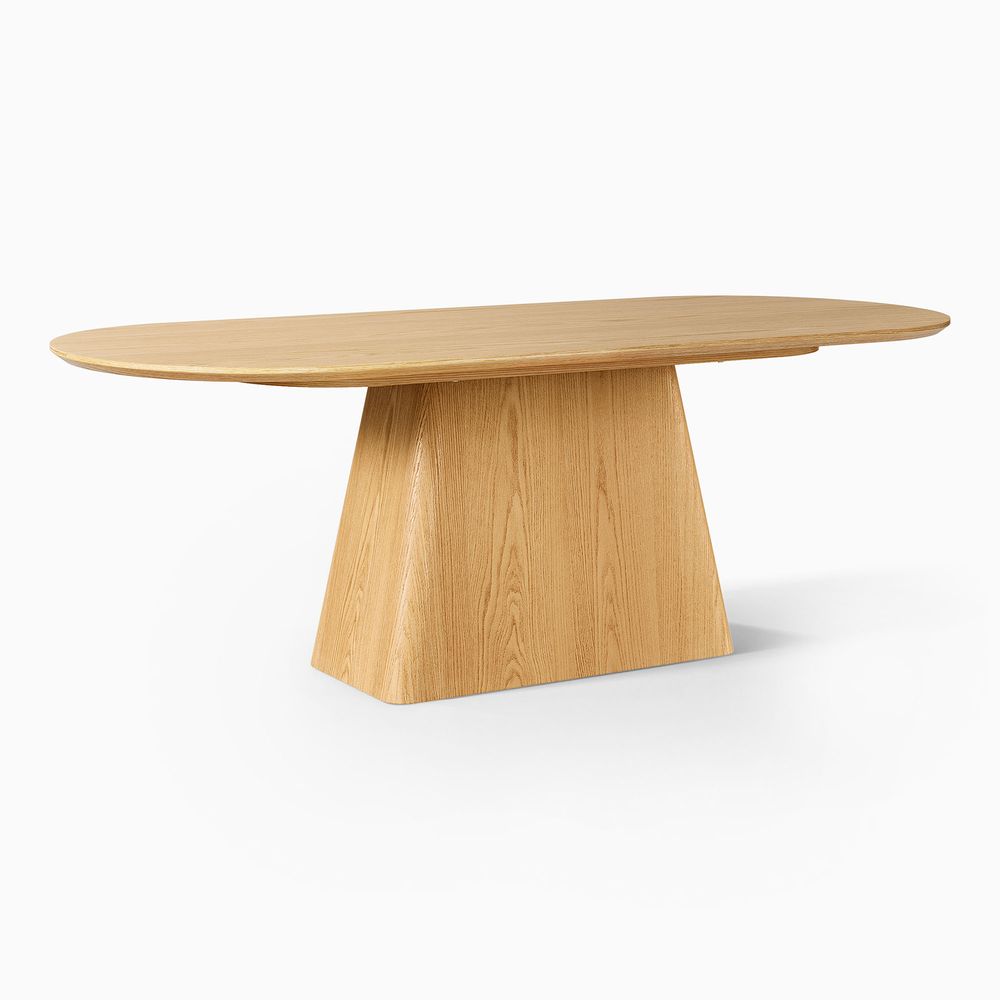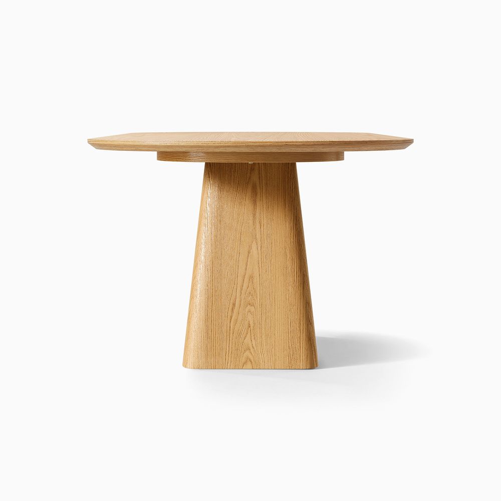 Meet the Thorsten Dining Table: where a modern silhouette wraps around timeless natural warmth, bringing tactile charm to every meal. Tabletop features rounded edges, keeping the look sleek and approachable. Complementing this refined surface is a uniquely wooden base crafted from rich finishes: a warm, organic touch that adds unshakable stability, forging a harmonious blend of contemporary sleekness and natural, inviting charm.