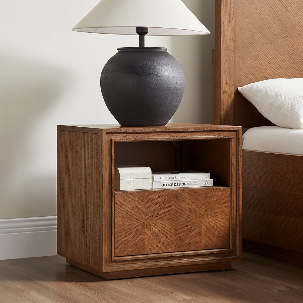 Crafted of American oak and engineered wood with oak veneers.All wood is kiln-dried for added durability.Finish is achieved through multistep process in which wood is wire brushed to highlight its rich grain.Wood glazing adds visual interest with greater depth and layering and enhances coloring.Drawers are crafted with precision dovetail joints for superior sturdiness and weight-bearing strength.Solid wood blocks are used at structural joints for reinforcement.Color perception may vary due to wood characteristics, lighting, and devices. Wood grain variation is expected, as each is unique.