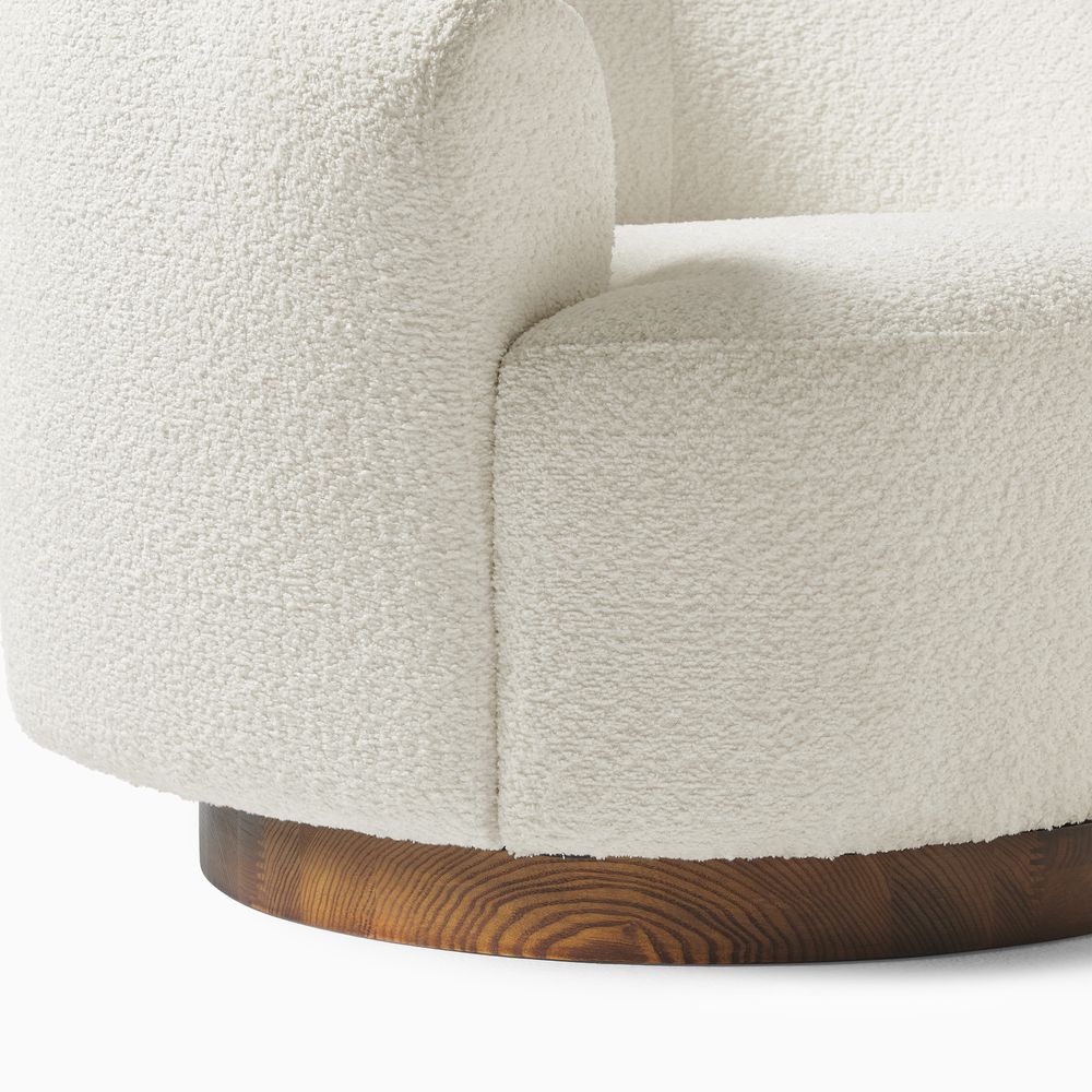 The rounded, cozy silhouette is designed to cradle your body, while the wooden swivel base adds a touch of rustic elegance. It's the perfect combination of style and functionality for any contemporary living space.