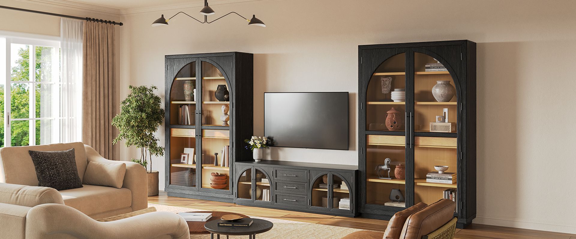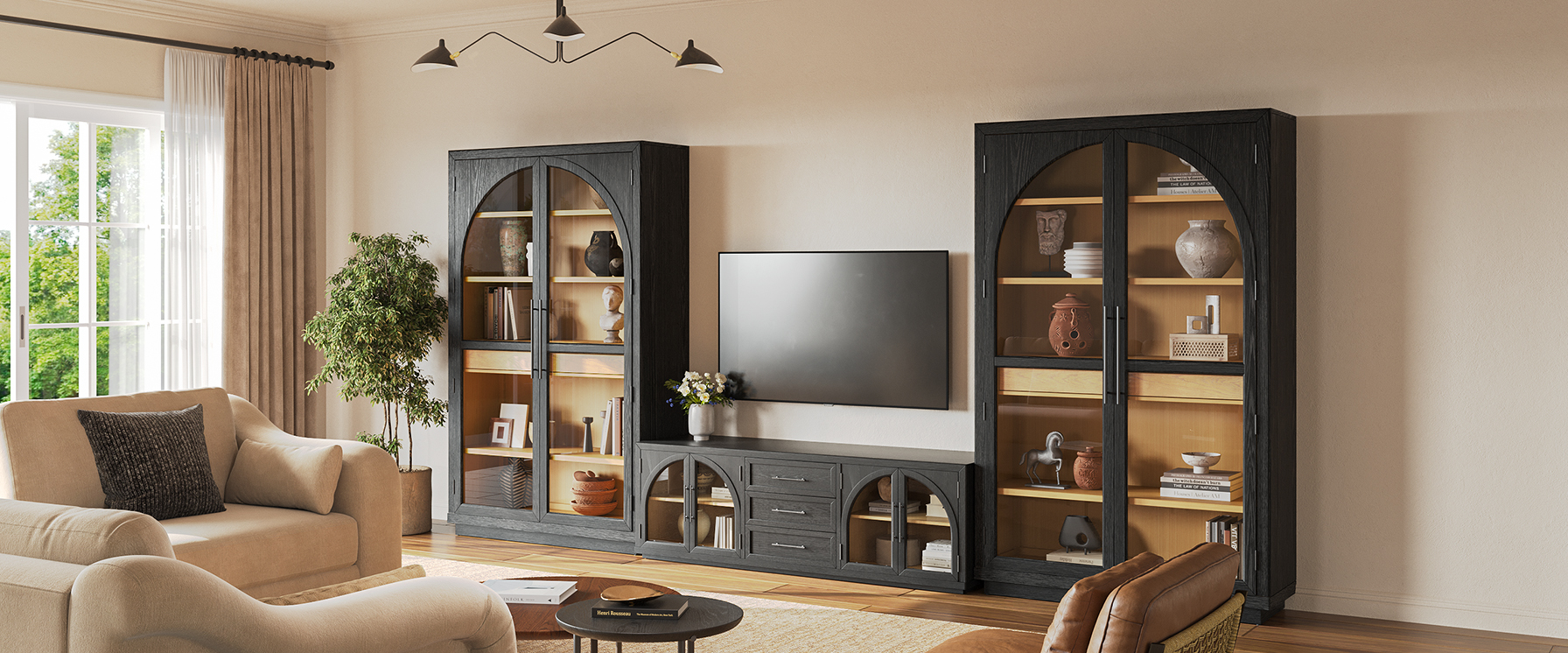 Reflecting the majestic arches of medieval castles, this Valborg collection combines elegance and practicality. Its wooden structure and arched accents capture the fortress-like resilience, perfect for storing collection with a touch of history.