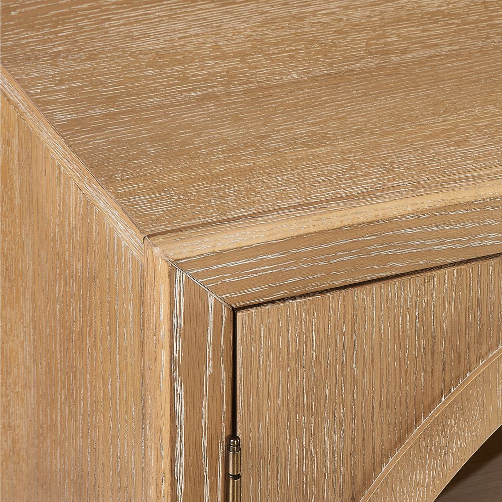 Crafted of American solid oak and engineered wood with oak veneers.All wood is kiln-dried for added durability.Finish is achieved through multistep process in which wood is wire brushed to highlight its rich grain.Drawers are crafted with precision dovetail joints for superior sturdiness and weight-bearing strength.Solid wood blocks are used at structural joints for reinforcement.Designed for TVs up to 85", 2 cord cutouts in back panel for cable management.Color perception may vary due to wood characteristics, lighting, and devices. Wood grain variation is expected, as each is unique.