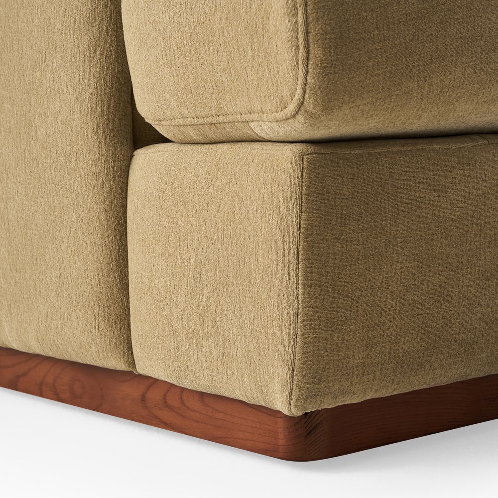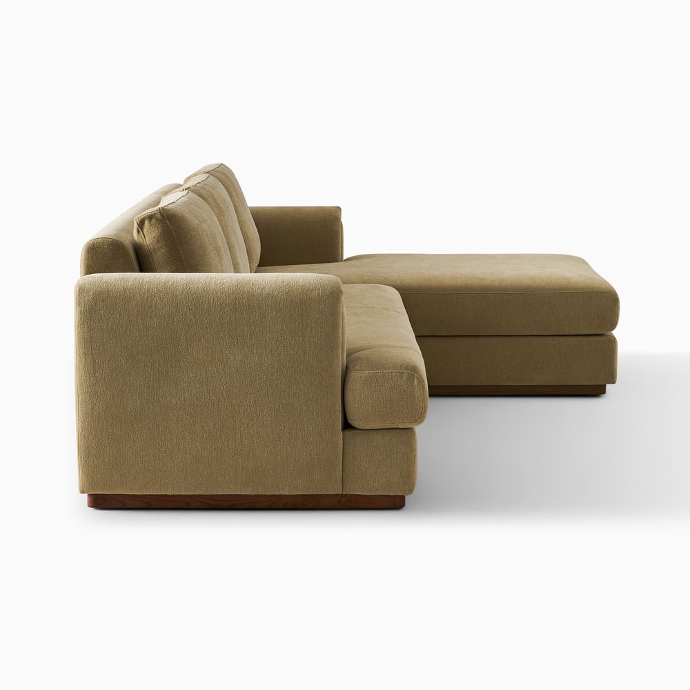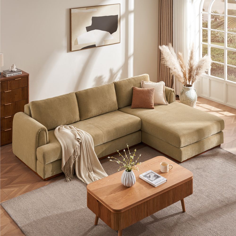 Preconfigured sofa consists of 1 two-seater left armchair and 1 right arm chaise.American solid ash wood and plywood frame.Chenille fabric with softness and a casual lived-in look.Seat cushions have fiber-wrapped, high-resiliency polyurethane foam cores.Sinuous spring suspension with reinforced elastic webbing.The upholstery on the sofa adds soft padding for cozy, stylish seating surfaces.Cushion covers unzip to remove, 2 throw pillows are included.Items purchased at different times may not match due to different dye lots, also color perception can vary by lighting and devices.