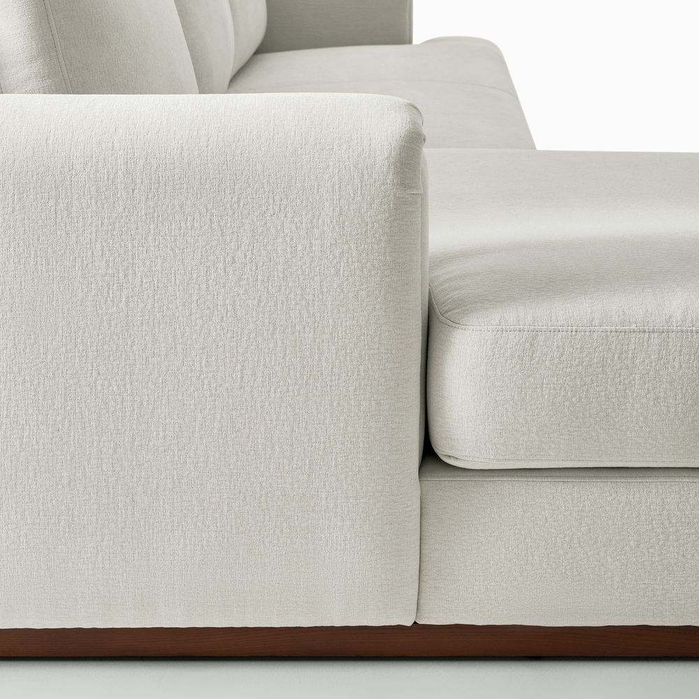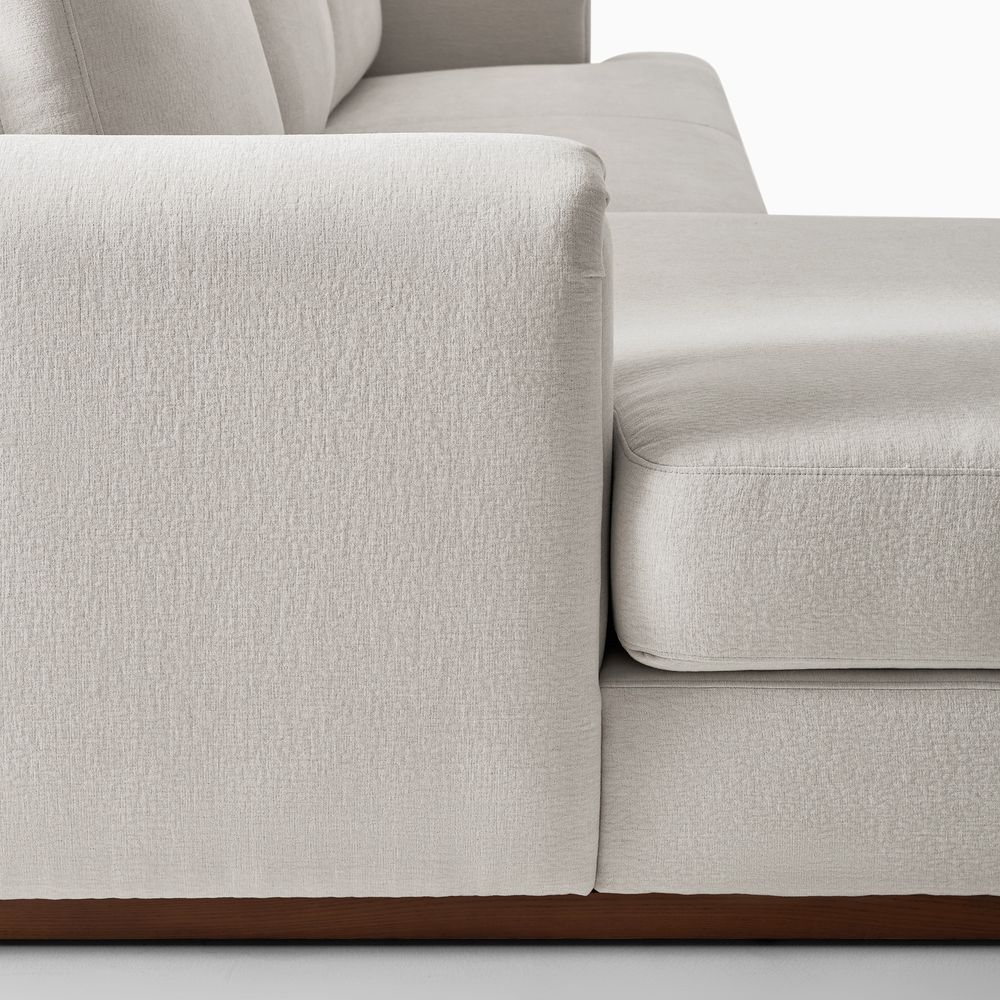 Preconfigured sofa consists of 1 two-seater left armchair and 1 right arm chaise.American solid ash wood and plywood frame.Cotton fabric is breathable, soft, durable, and easy to care for.Seat cushions have fiber-wrapped, high-resiliency polyurethane foam cores.Sinuous spring suspension with reinforced elastic webbing.The upholstery on the sofa adds soft padding for cozy, stylish seating surfaces.Cushion covers unzip to remove, 2 throw pillows are included.Items purchased at different times may not match due to different dye lots, also color perception can vary by lighting and devices.