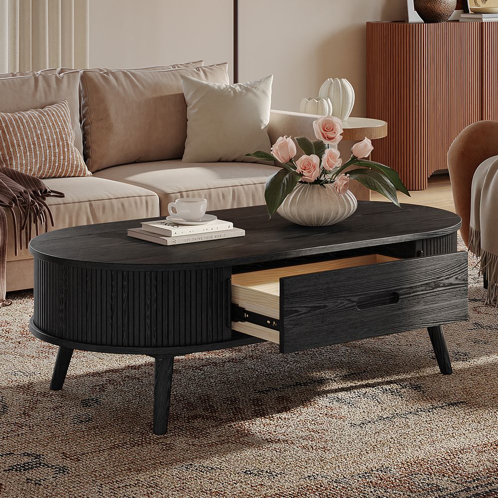 Crafted of American solid oak and plywood with oak veneers.All wood is kiln-dried for added durability.Finish is achieved through multistep process in which wood is wire brushed to highlight its rich grain.Drawers are crafted with precision dovetail joints for superior sturdiness and weight-bearing strength.Solid wood blocks are used at structural joints for reinforcement.Solid oak fluting presents a natural texture.Tambour door offers a sleek, space-saving solution with a modern aesthetic.Color perception may vary due to wood characteristics, lighting, and devices. Wood grain variation is expected, as each is unique.