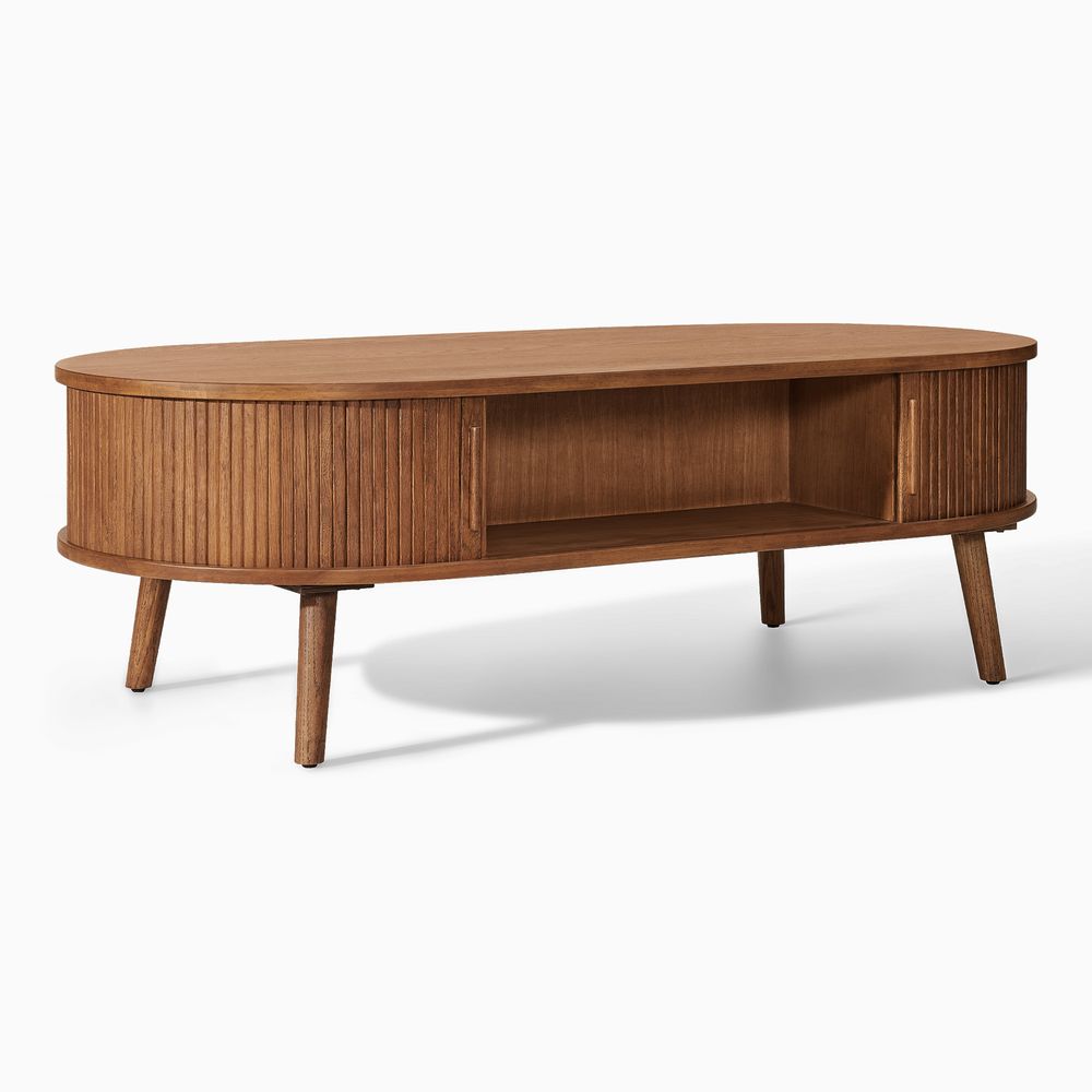 Tambour door offers a sleek, space-saving solution with a modern aesthetic.