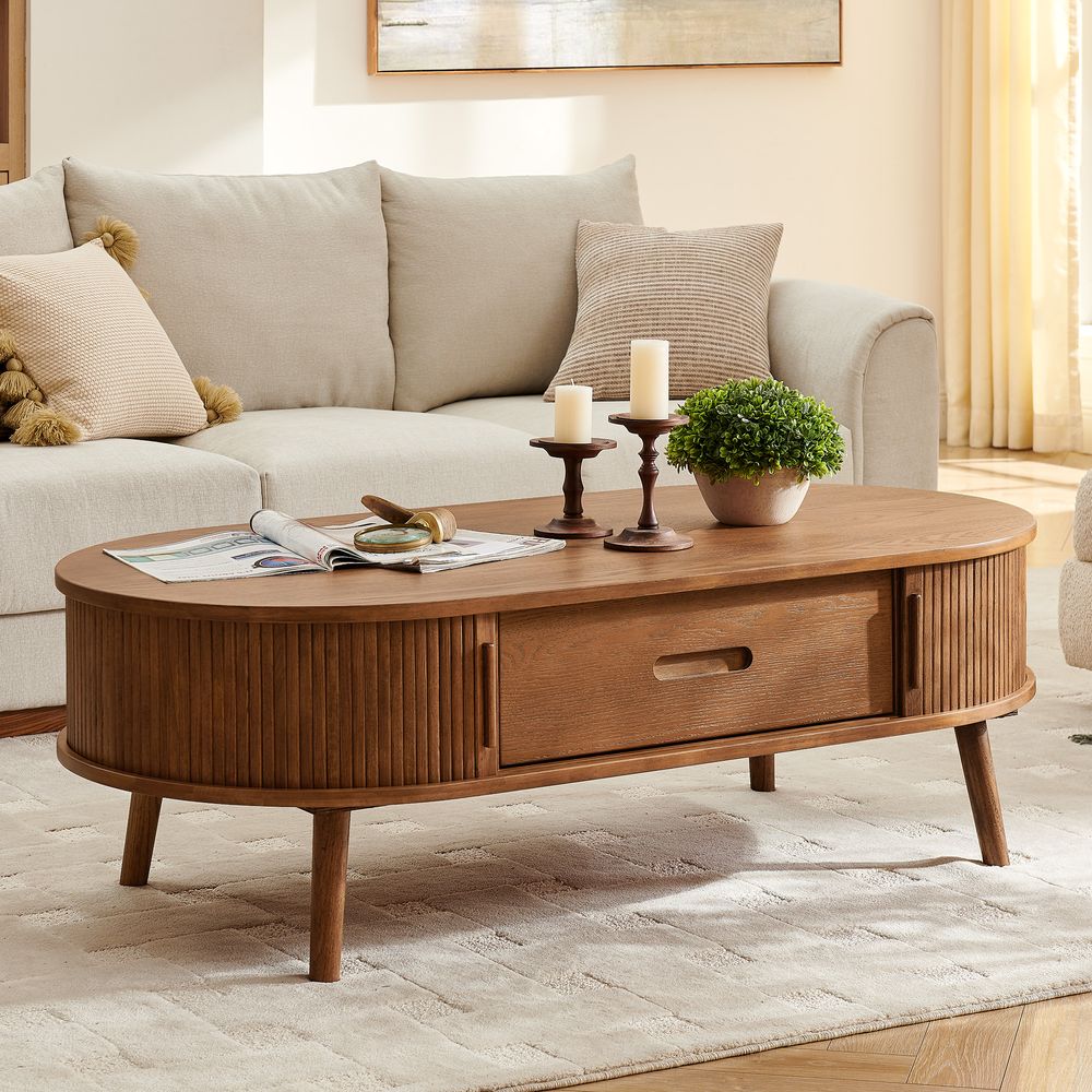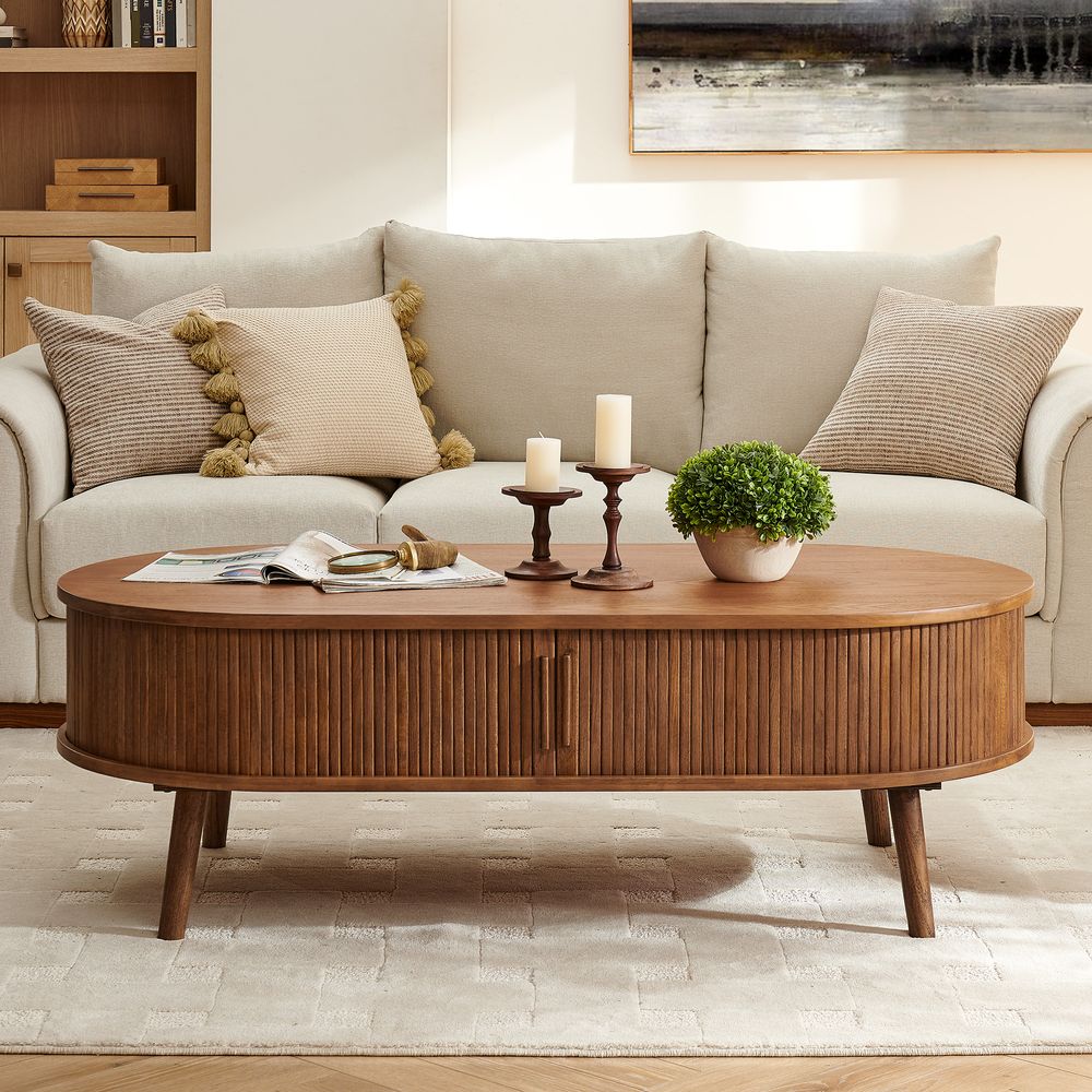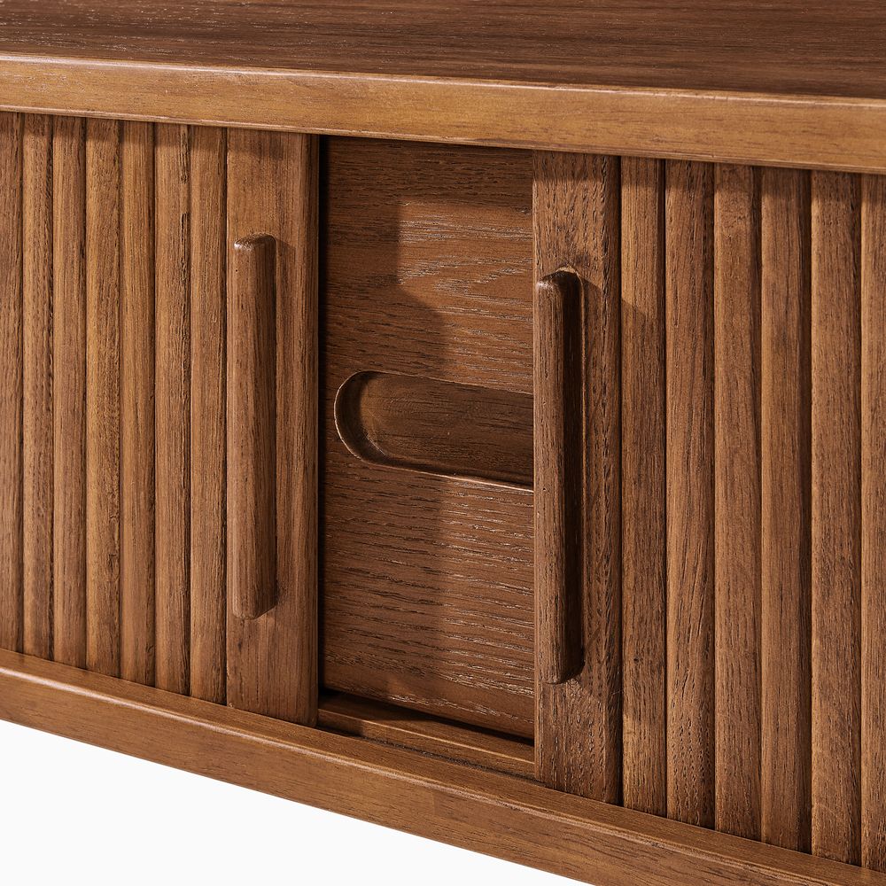 Designed in a mid-century aesthetic with sliding doors, this creation blends old-world elegance with functionality. The rich wood tones and textured surface recall mid-century design, offering a practical storage option that brings a touch of retro sophistication to modern interiors.