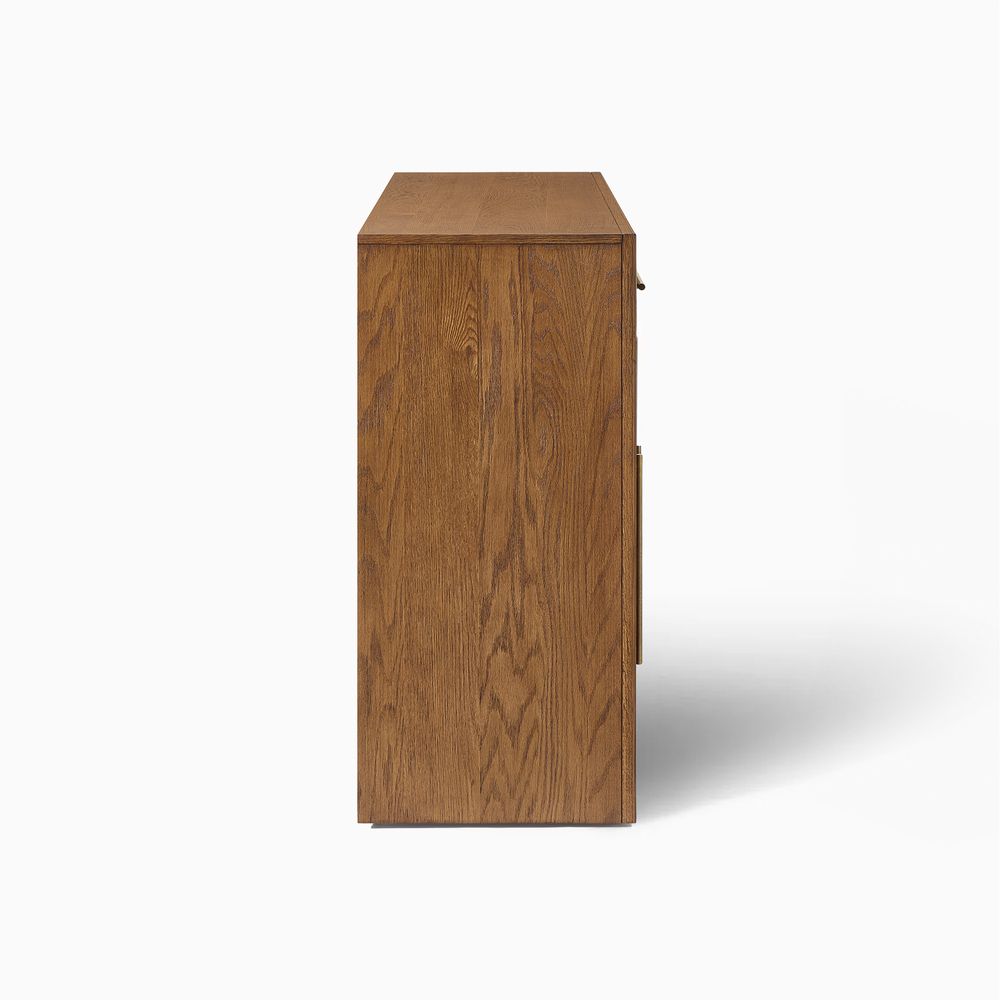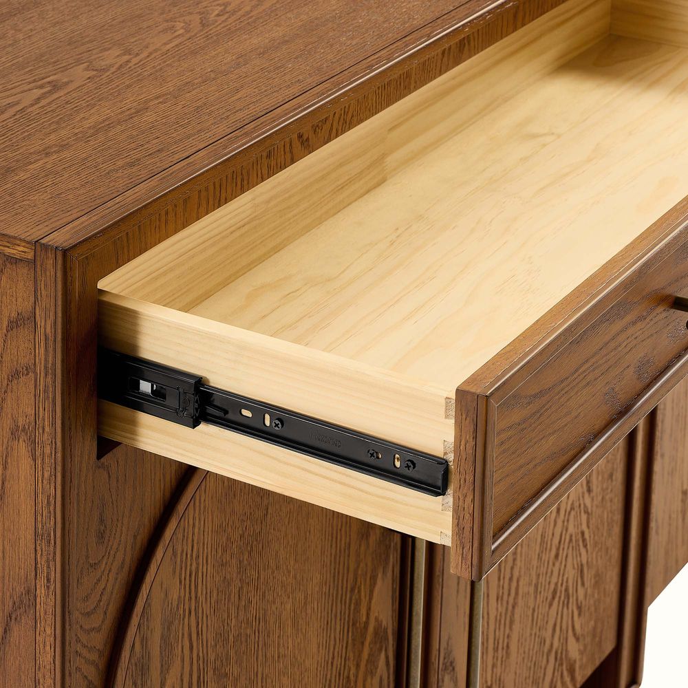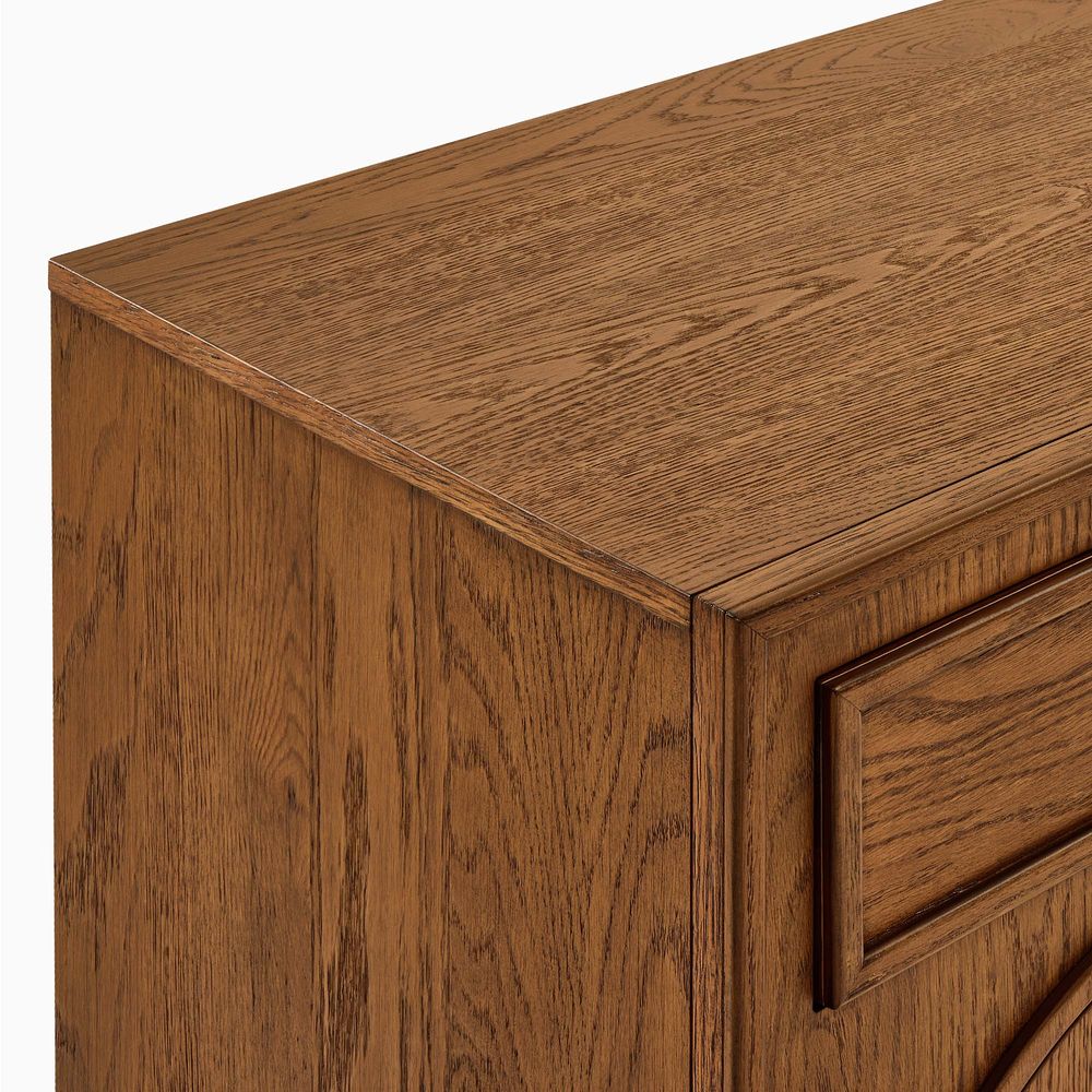 Crafted of solid wood and engineered wood with American oak veneers.All wood is kiln-dried for added durability.Finish is achieved through multistep process in which wood is wire brushed to highlight its rich grain.Wood glazing adds visual interest with greater depth and layering and enhances coloring.Drawers are crafted with precision dovetail joints for superior sturdiness and weight-bearing strength.Solid wood blocks are used at structural joints for reinforcement.Color perception may vary due to wood characteristics, lighting, and devices. Wood grain variation is expected, as each is unique.