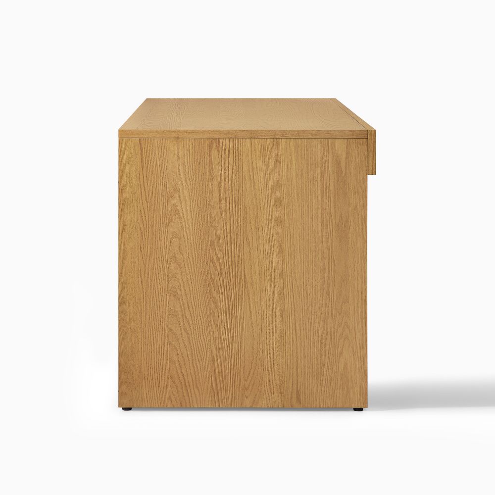 Crafted of solid wood and plywood with American oak veneers.All wood is kiln-dried for added durability.Finish is achieved through multistep process in which wood is wire brushed to highlight its rich grain.Wood glazing adds visual interest with greater depth and layering and enhances coloring.Solid wood blocks are used at structural joints for reinforcement.Drawers are crafted with precision dovetail joints for superior sturdiness and weight-bearing strength.Color perception may vary due to wood characteristics, lighting, and devices. Wood grain variation is expected, as each is unique.