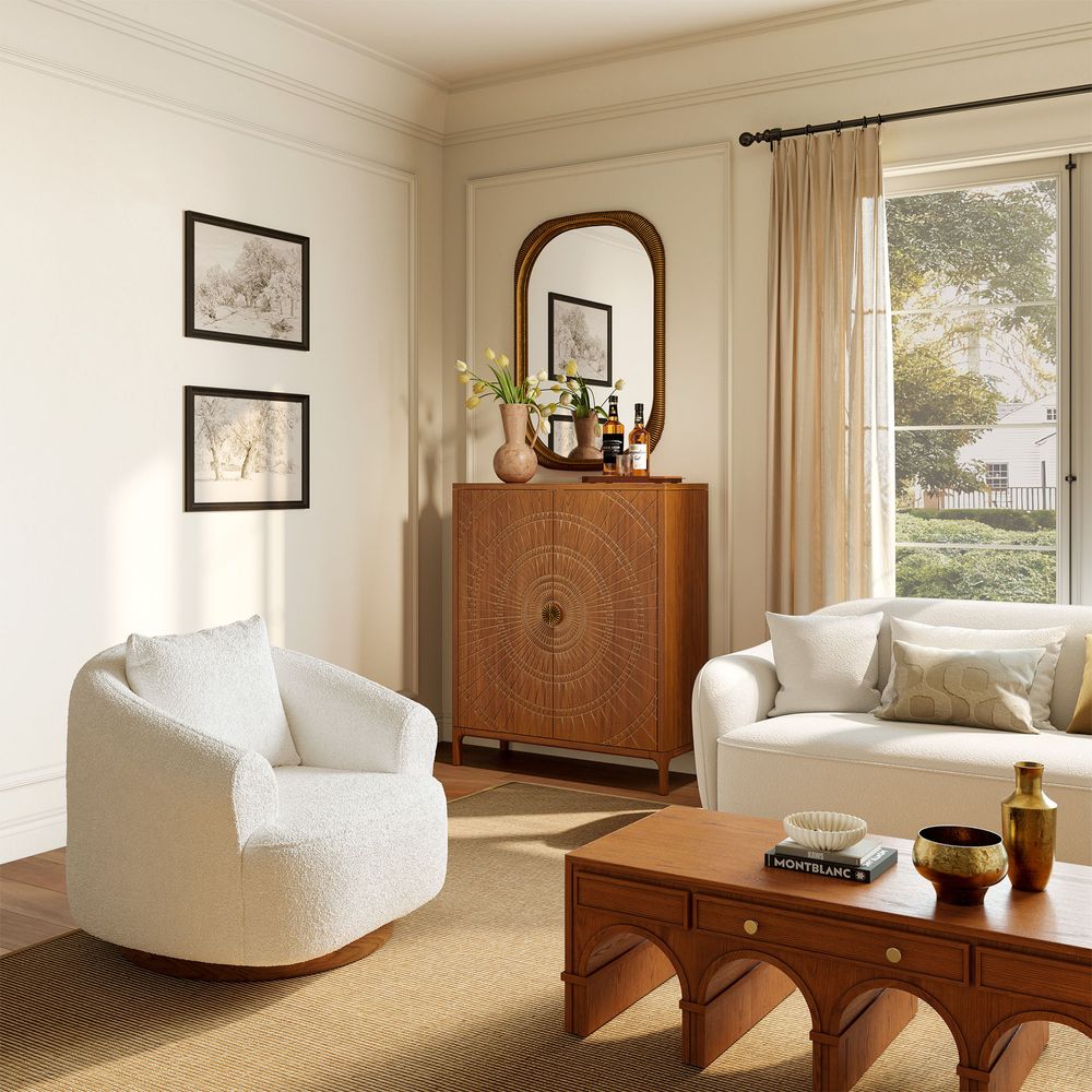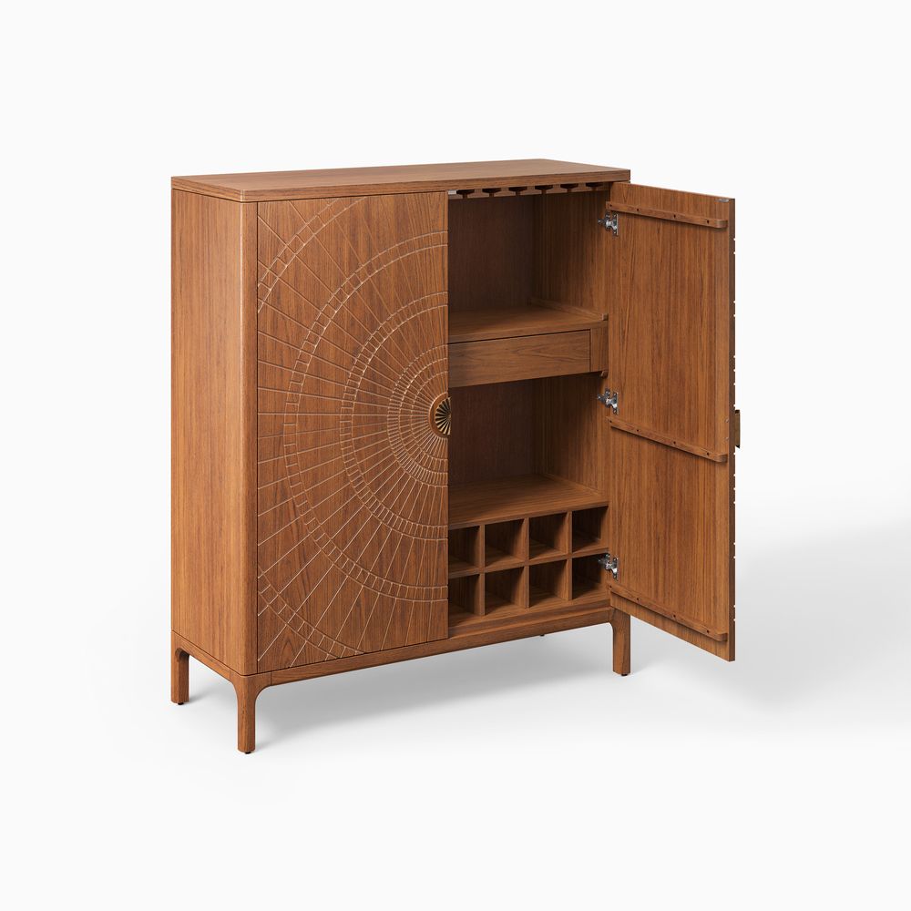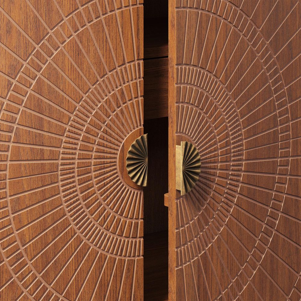 Drawing inspiration from mid-century modern design, the Vigdis collection is a celebration of natural materials and impeccable craftsmanship. Its most striking feature is the exquisite sunburst carving adorning the surface, adding an artistic touch and rich texture. This is complemented by elegantly tapered legs, which create a perfect balance between solid construction and a visually lightweight silhouette.