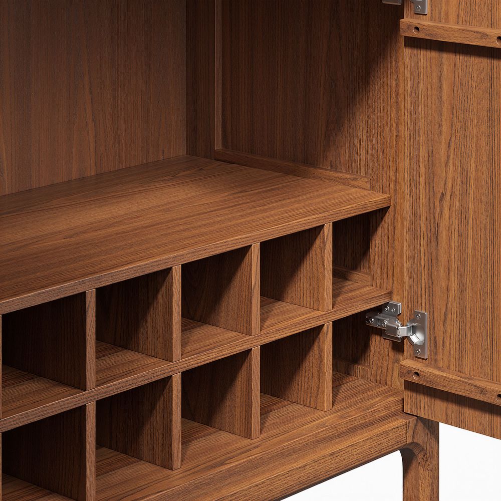 47 inch  Mid Century Brown Solid Oak Home Bar Storage Cabinet