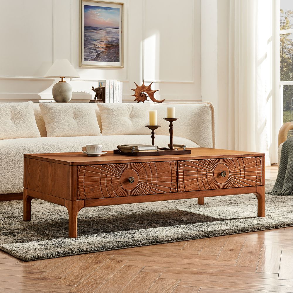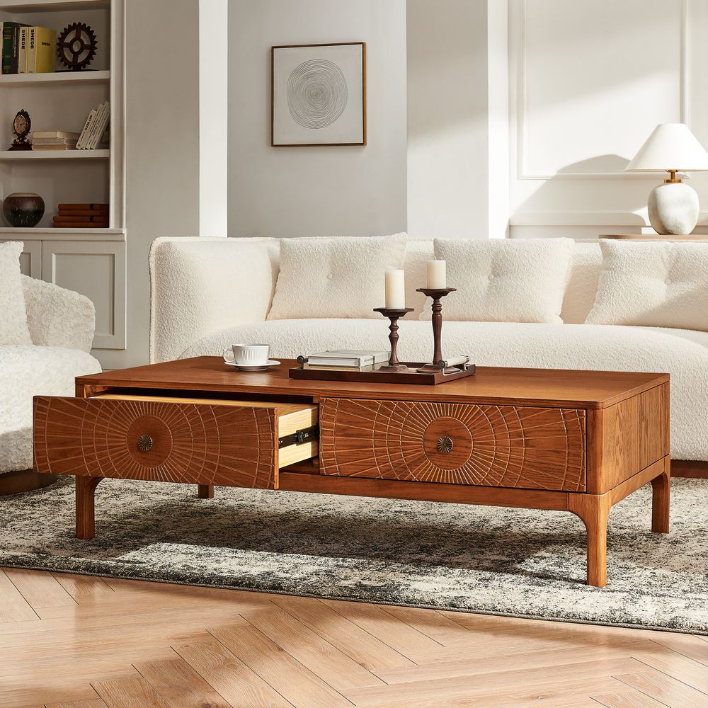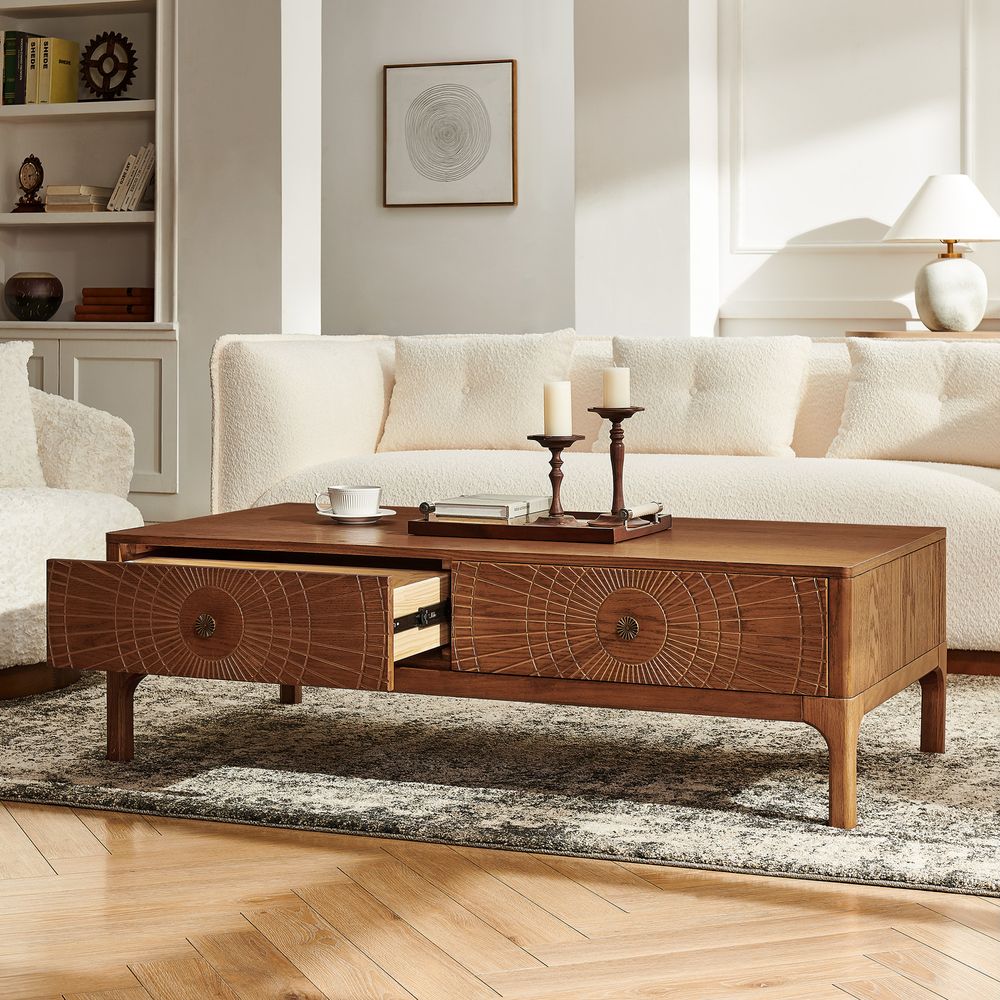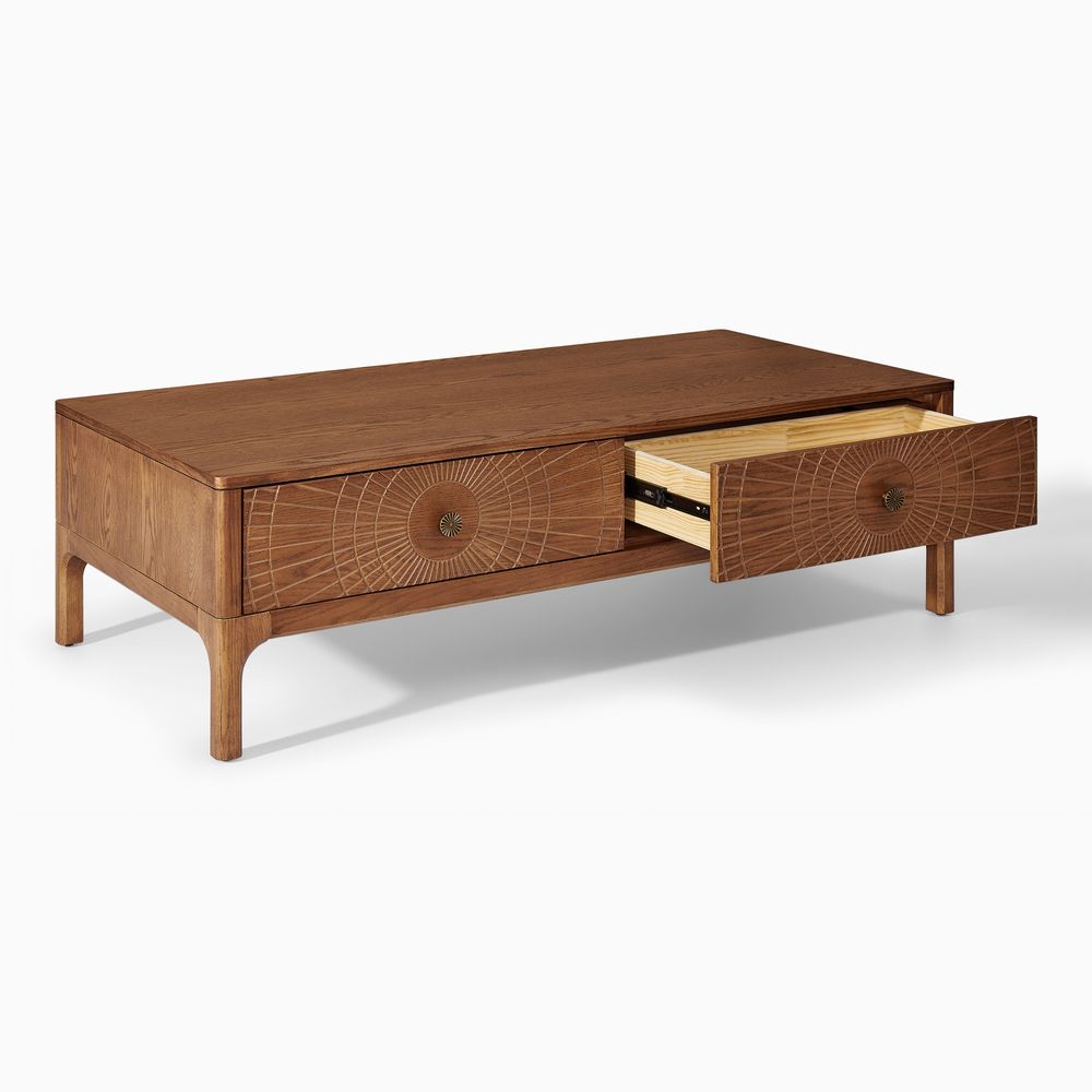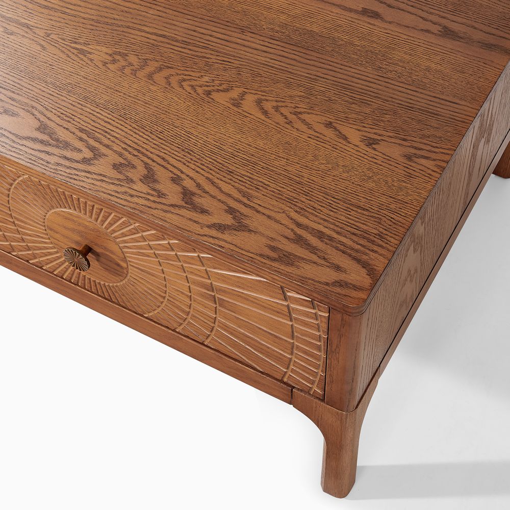 Drawing inspiration from mid-century modern design, the Vigdis collection is a celebration of natural materials and impeccable craftsmanship. Its most striking feature is the exquisite sunburst carving adorning the surface, adding an artistic touch and rich texture. This is complemented by elegantly tapered legs, which create a perfect balance between solid construction and a visually lightweight silhouette.